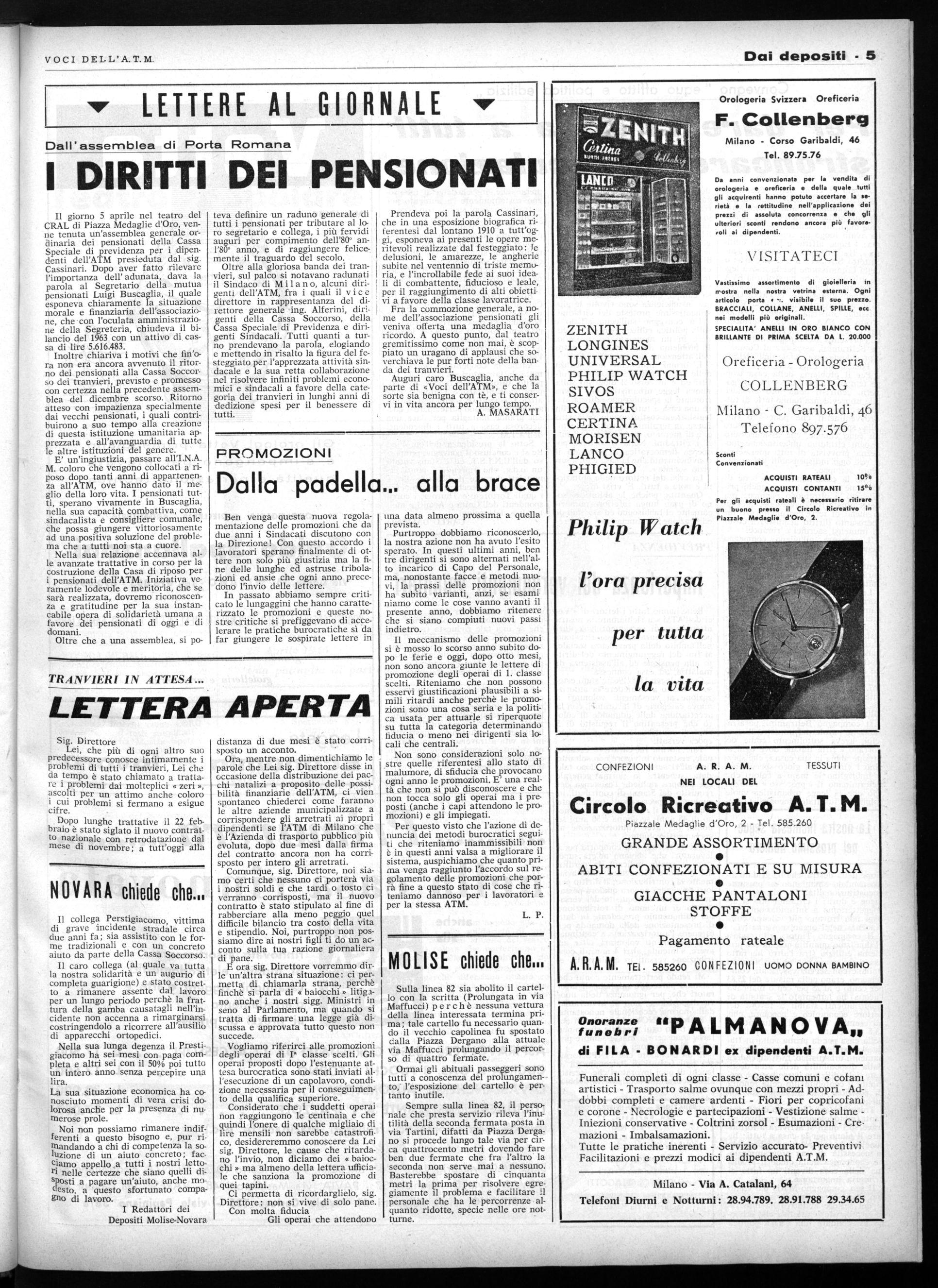 voro; sulla Cassa di Soccorso, che ha eliminato stridenti sperequazioni, e il recente ottimo accordo sul Contratto Nazionale che ha apportato sensibili aumenti sulla paga e su altri istituti (scatti biennali, liquidazione e 14' mensilità). Aziendalmente, sia pur a passi molto lenti, avanza e si fa strada una nuova e più democratica politica nei rapporti fra direzione e personale di cui il regolamento delle promozioni ed avanzamenti (ancora in fase di discussione) ne costituirà la più importante conquista.