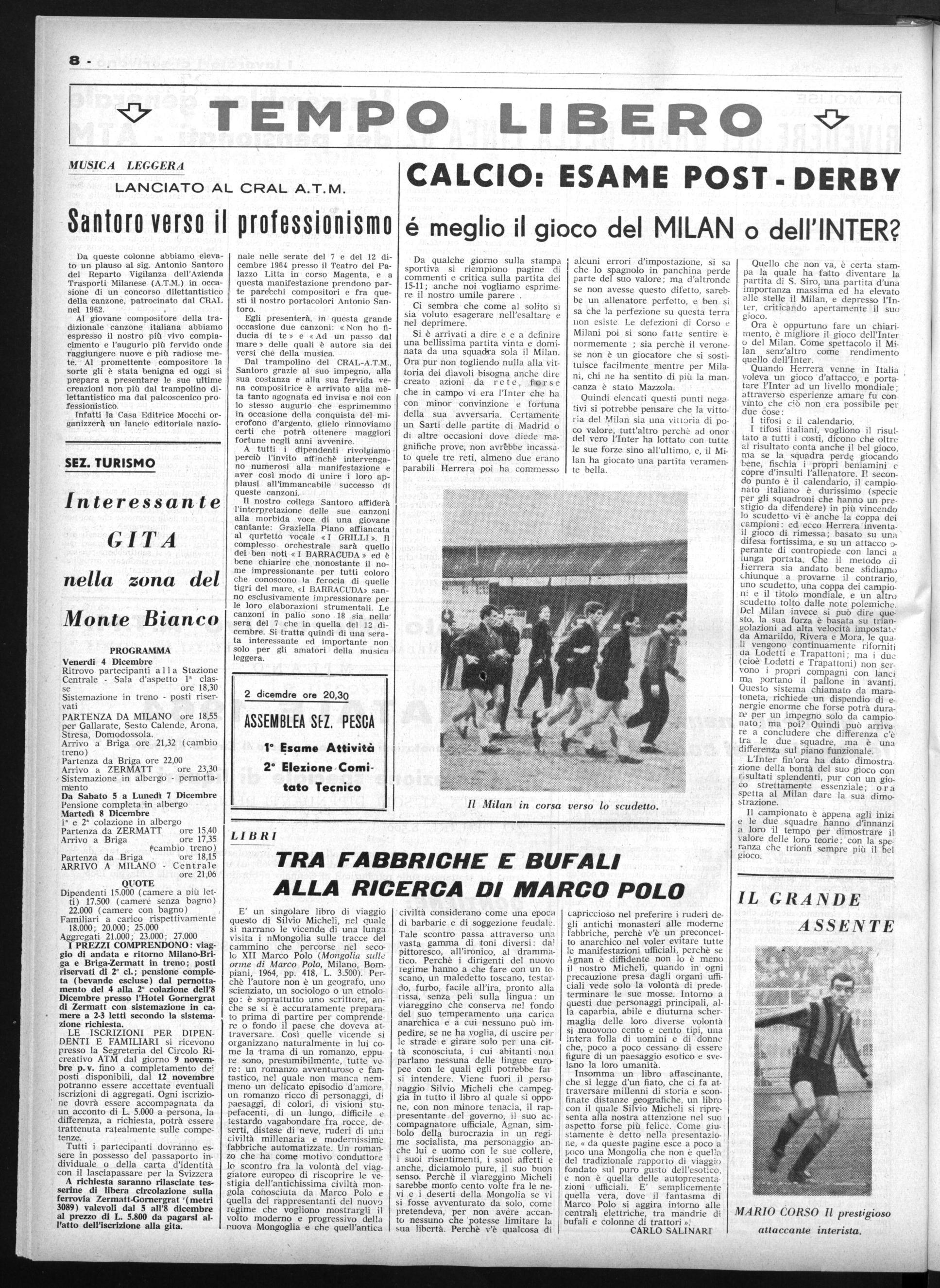 Da, queste colonne abbiamo elevato un plauso al sig. Antonio Santoro del Reparto Vigilanza dell'Azienda Trasporti Milanese (A.T.M.) in occasione di un concorso dilettantistico della canzone, patrocinato dal CRAL nel 1962.