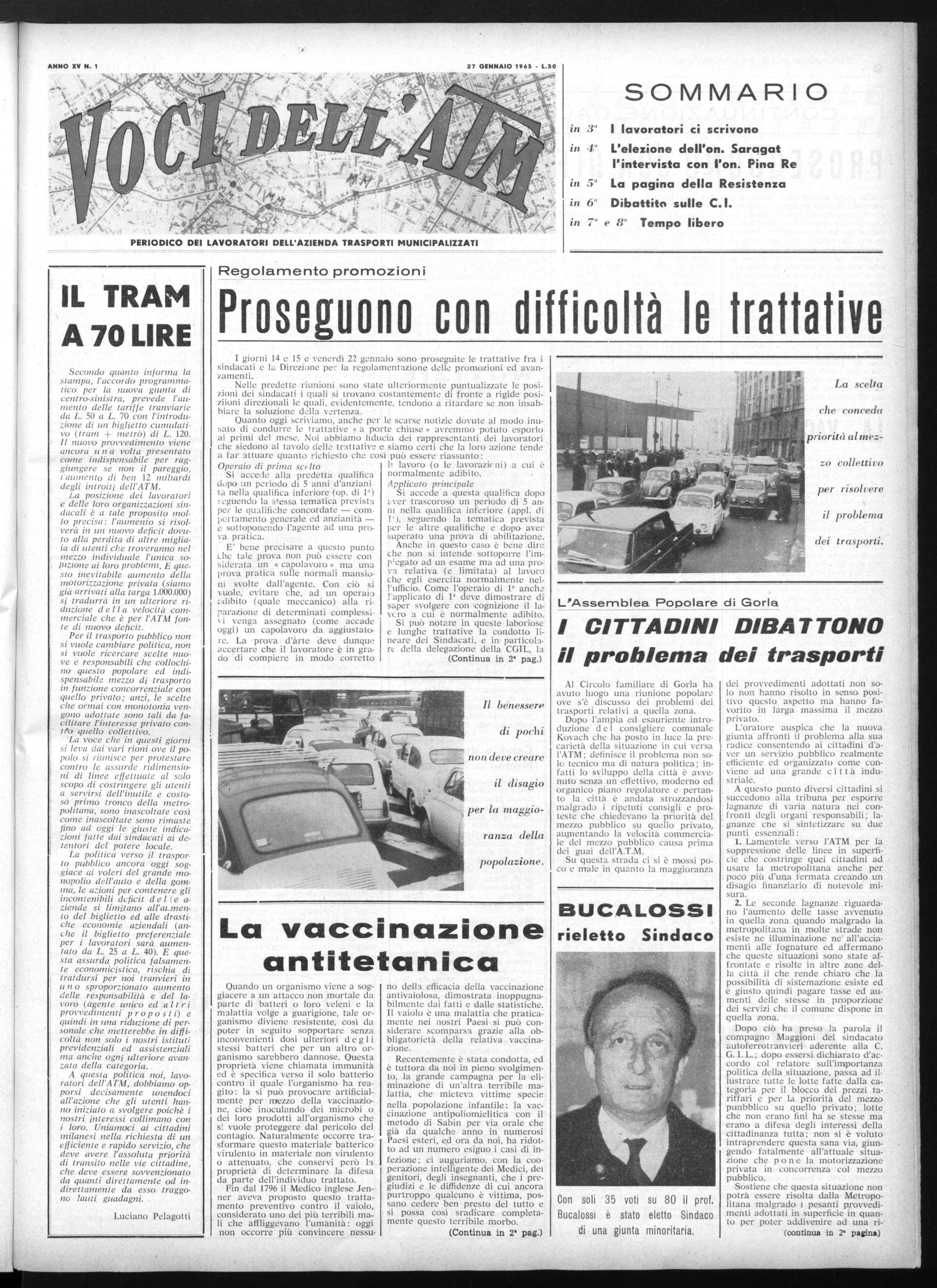 'La voce che in questi giorni si leva dai vari rioni ove il popolo si riunisce per protestare contro le assurde ridimensioni di linee effettuate al solo scopo di costringere gli utenti a servirsi dell'inutile e costoso primo tronco della metropolitana, sono inascoltate così come inascoltate sono rimaste fino ad oggi le giuste indicazioni fatte dai sindacati ai detentori del potere locale.