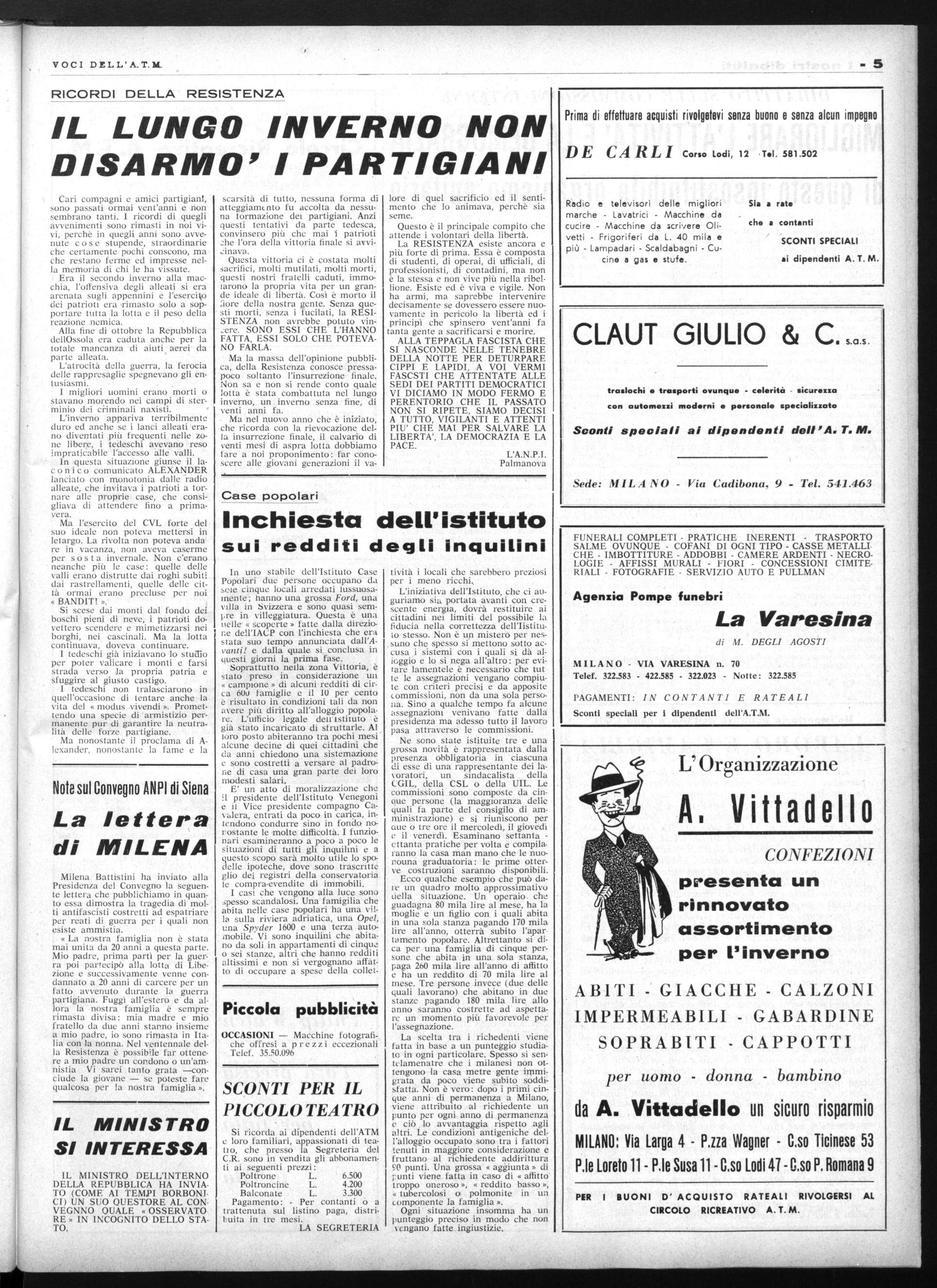 A questa politica noi, lavoratori dell'ATM, dobbiamo opporsi decisamente unendoci all'azione che gli utenti hanno iniziato a svolgere poichè i nostri interessi collimano con i loro. Uniamoci ai cittadini milanesi nella richiesta di un efficiente e rapido servizio, che deve avere l'assoluta priorità di transito nelle vie cittadine, che deve essere sovvenzionato da quanti direttamente od indirettamente da esso traggo110 lauti guadagni.