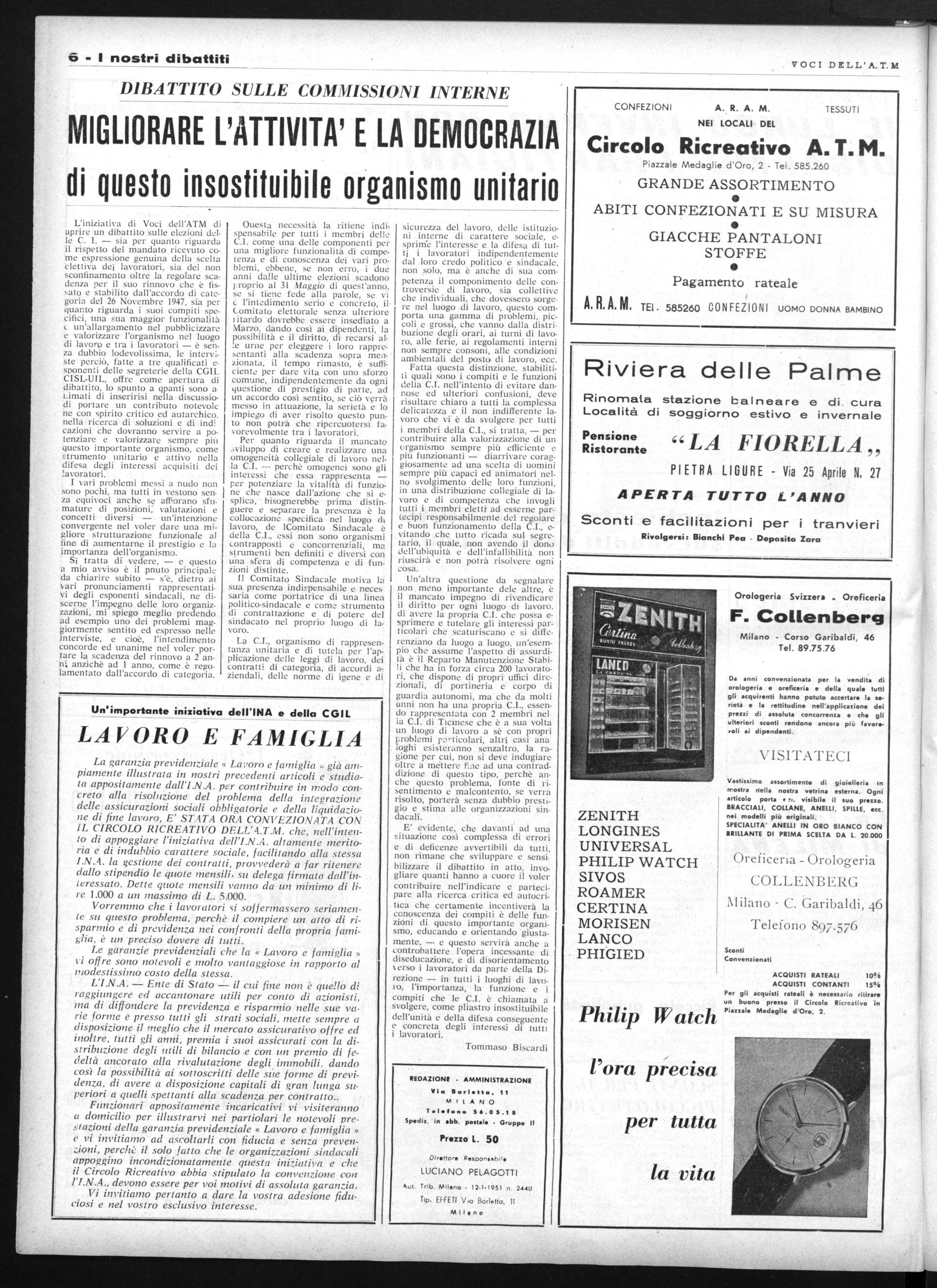 DEI LAVORATORI DELL'AZIENDA TRASPORTI MUNICIPALIZZATI
