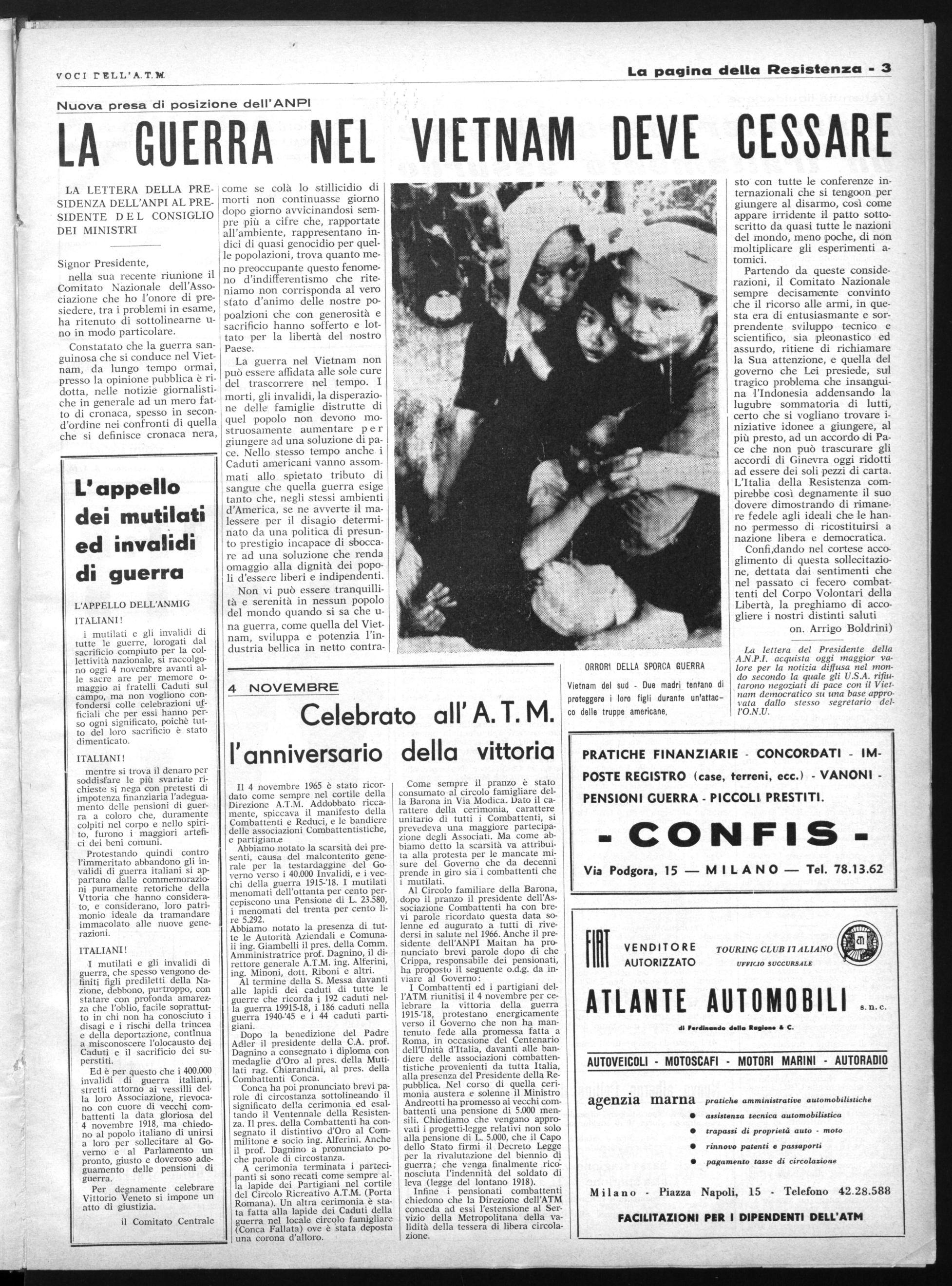 Constatato che la guerra sanguinosa che si conduce nel Vietnam, da lungo •tempo ormai, presso la opinione pubblica è ridotta, nelle notizie giornalistiche in generale ad un mero fatto di cronaca, spesso in second'ordine nei confronti di quella che si definisce cronaca nera,