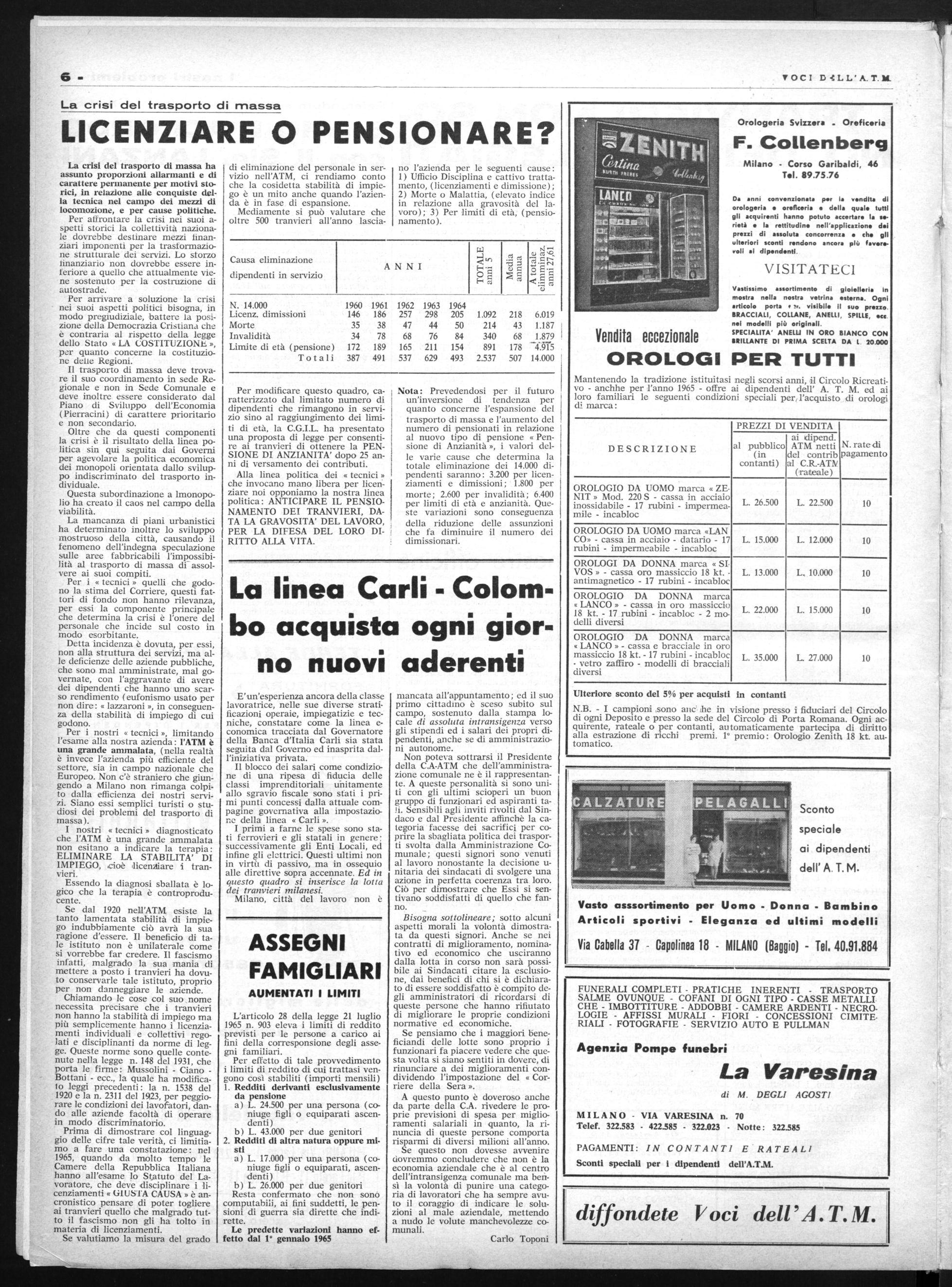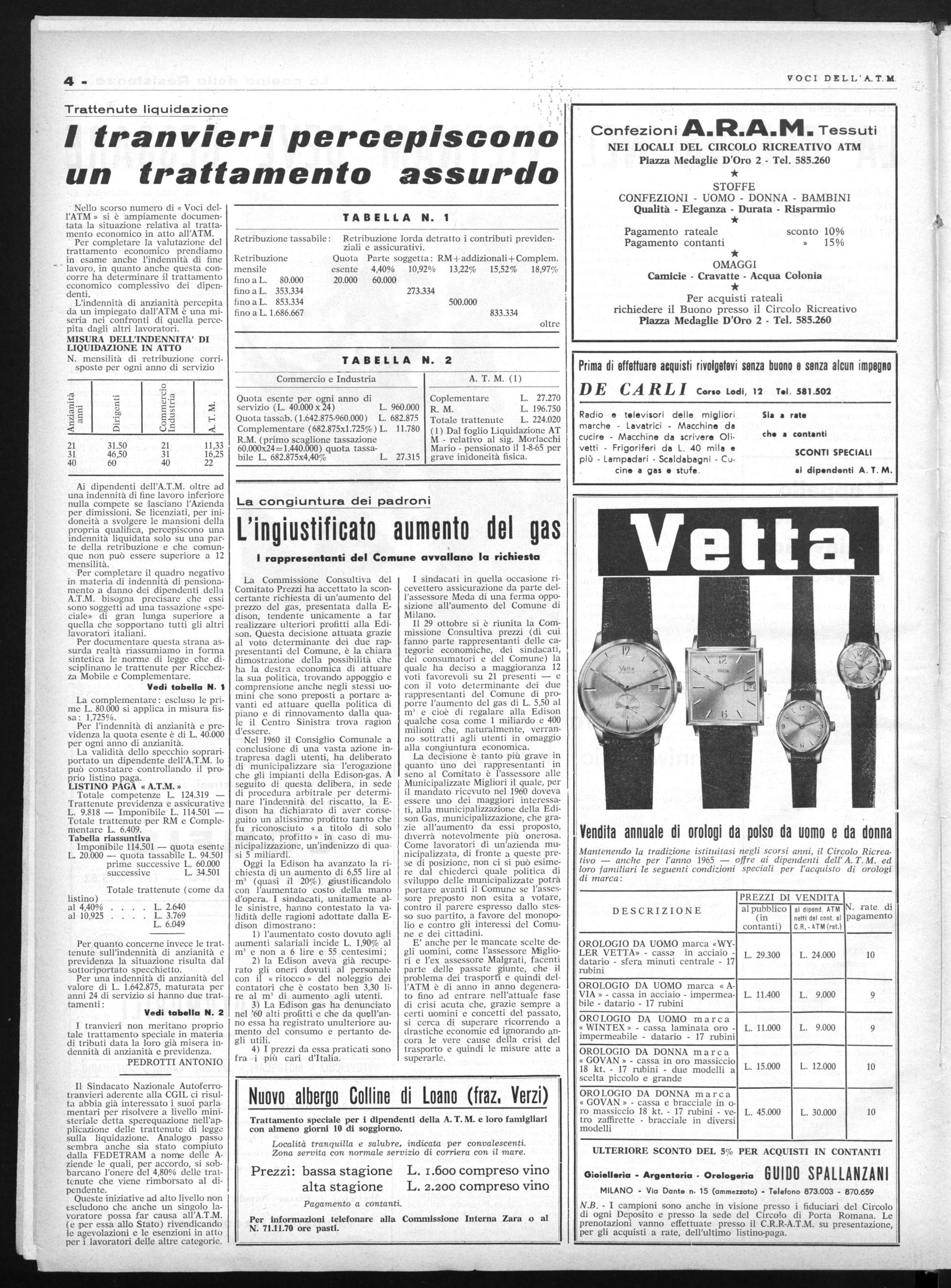 La C.A. dell'ATM continua a mantenere la sua posizione intransigente che partendo dal deficit di bilancio, cerca di non concedere alcuna miglioria sia economica che normativa e di imporre ai tranvieri nuovi sacrifici previsione orari p.v. ecc. Sul Regolamento Promozioni 'in sostituzione dello schema già concordato dopo due anni di trattative, l'ATM ha presentato ai sindacati una bozza ve ngono reolamento nella quale non solonn eluse tutte le aspettative del personale, ma di fatto costituisce un peggioramento della situazione in atto. Il documento sul rinnovo delle Competenze Acessorie, anch'esso presentata dalla Direzione, nella sostanza non si distacca dalla primaria posizione che prevedeva il rinvio delle trattative « a tempi migliori » limitandosi ad accettare la revisione di due o tre istituti di infima importanza (diarie e trasferte, regolamentazione dei congedi matrimoniali e dei permessi funerari) quasi volesse ironizzare sulle richieste avanzate dal personale.