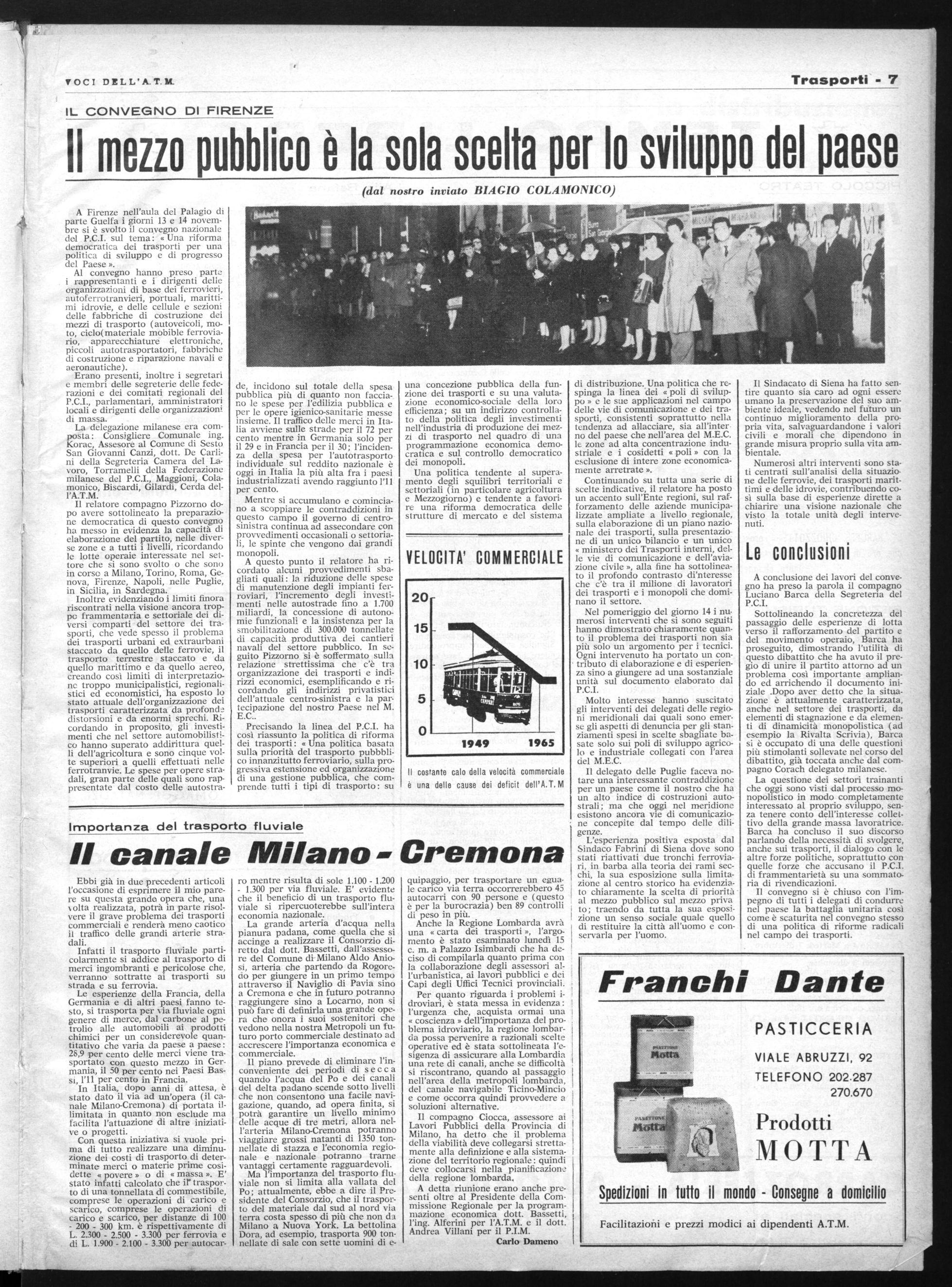 Il compagno Ciocca, assessore ai Lavori Pubblici della Provincia di Milano, ha detto che il problema della viabilità deve collegarsi strettamente alla definizione e alla sistemazione del territorio regionale : quindi deve collocarsi nella pianificazione della regione lombarda, A detta riunione erano anche presenti oltre al Presidente della Commissione Regionale per la programmazione economica dott. Bassetti, l'ing. Alferini per l'A.T.M. e il dott. Andrea Villani per il P.I.M. Carlo Dameno