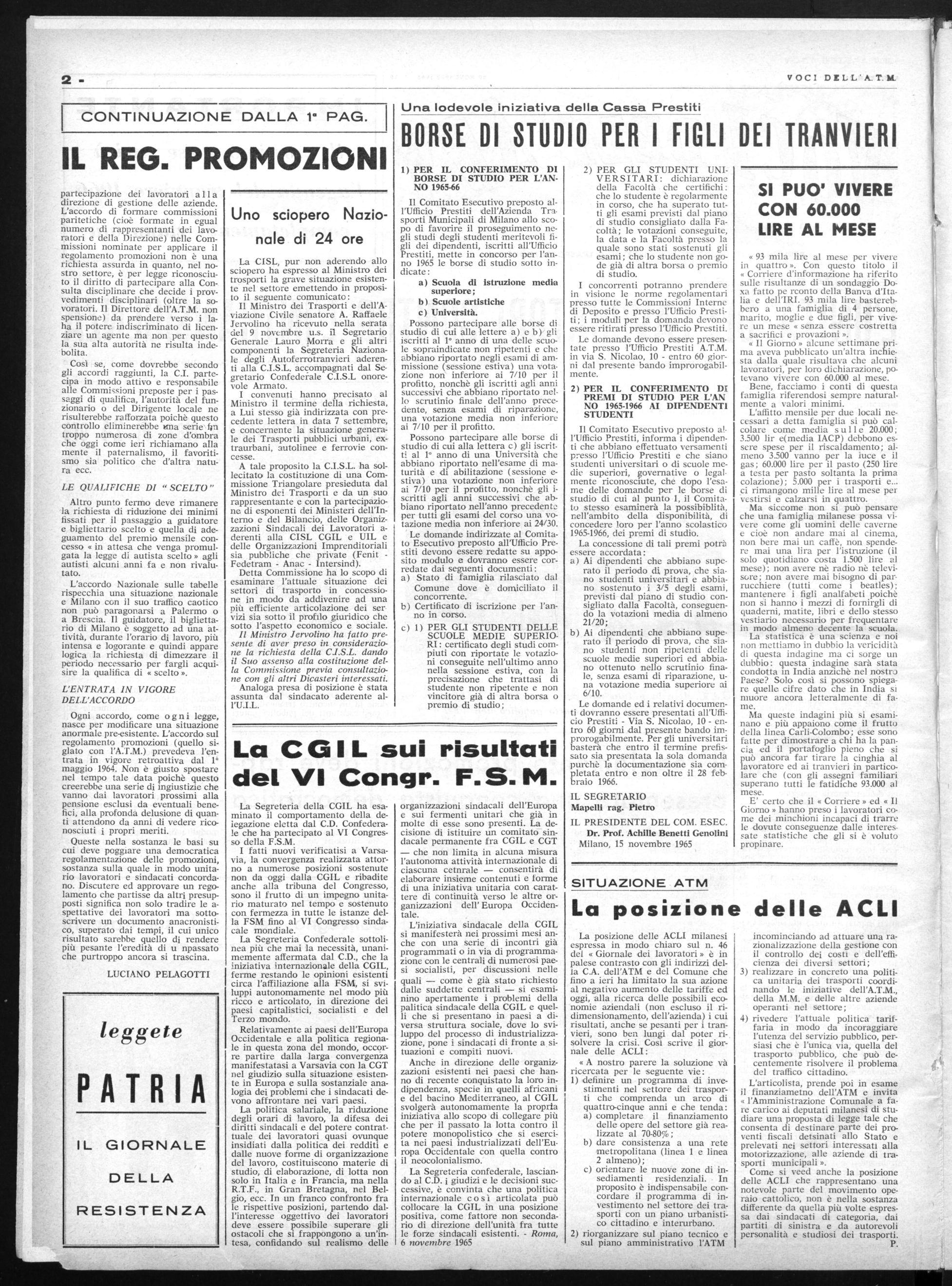 IL SEGRETARIO Mapelli rag. Pietro IL PRESIDENTE DEL COM. ESEC. Dr. Prof. Achille Benetti Genolini Milano, 15 novembre 1965