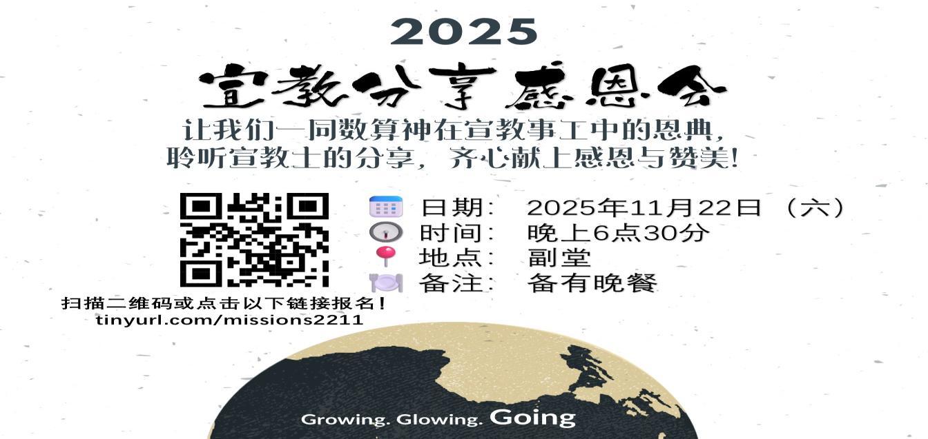 让我们一同预备心,迎接这个充满意义的团聚 时刻!这是一个难得的机会,福灵堂大家庭将 跨世代、跨语音、齐聚一堂,一起聆听神的话 语、彼此交通并建立更深的关系。
