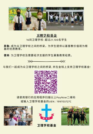 卫理学校基金每年都必须筹集捐款以提升校园设 施和教学器材,并为有需要的学生提供助学金和 经济援助。