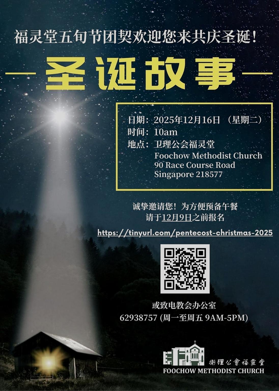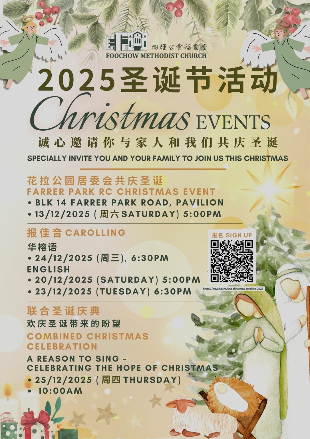 若弟兄姐妹有意开放住家,让佳音队于12月24日 (周三)傍晚前往府上,与您及亲友一同分享 圣诞节的意义,请联络郑淑玲姐妹@9829 8000。
