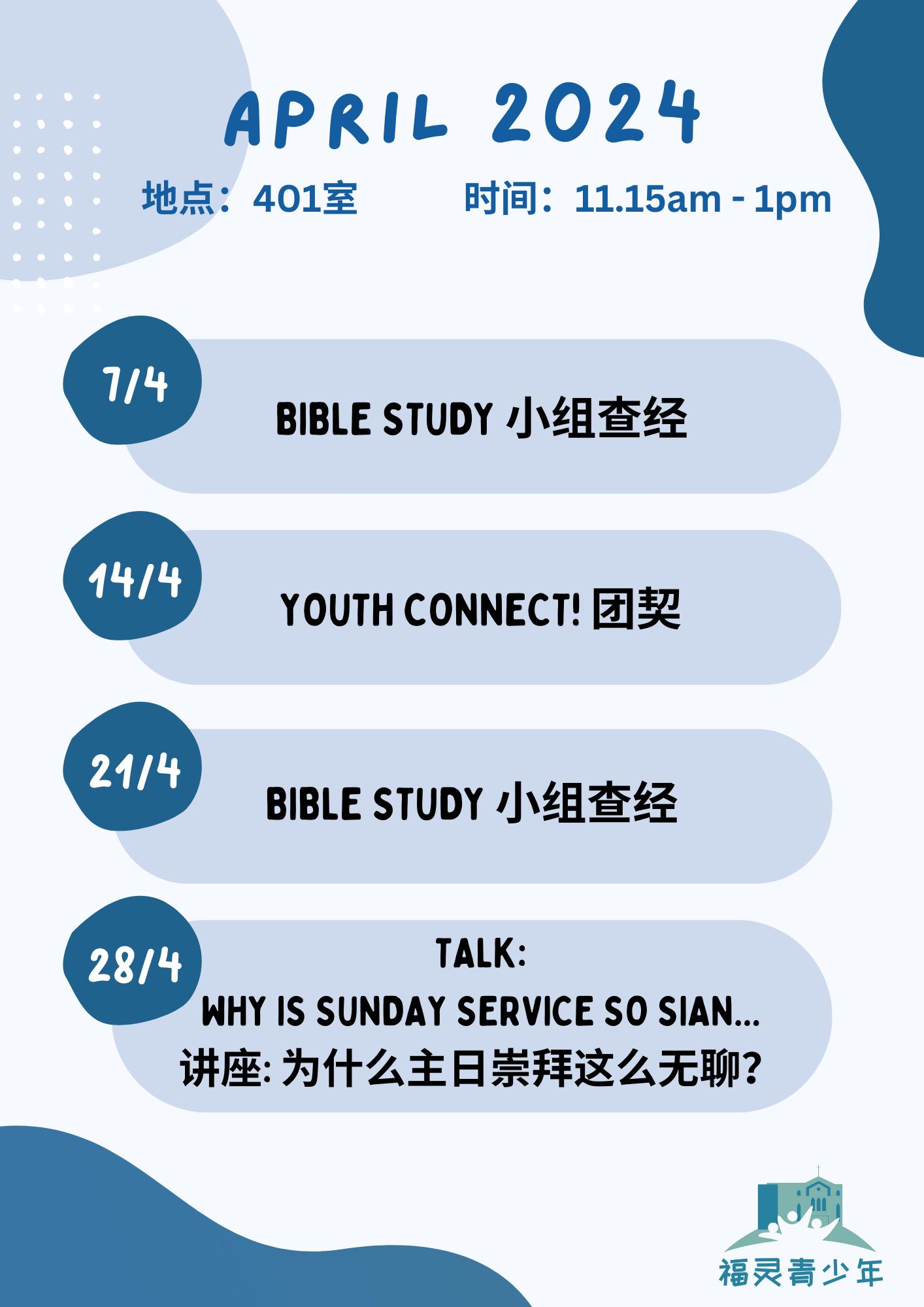 时间:上午10时(敬拜,信息,体操 & 共用午餐)