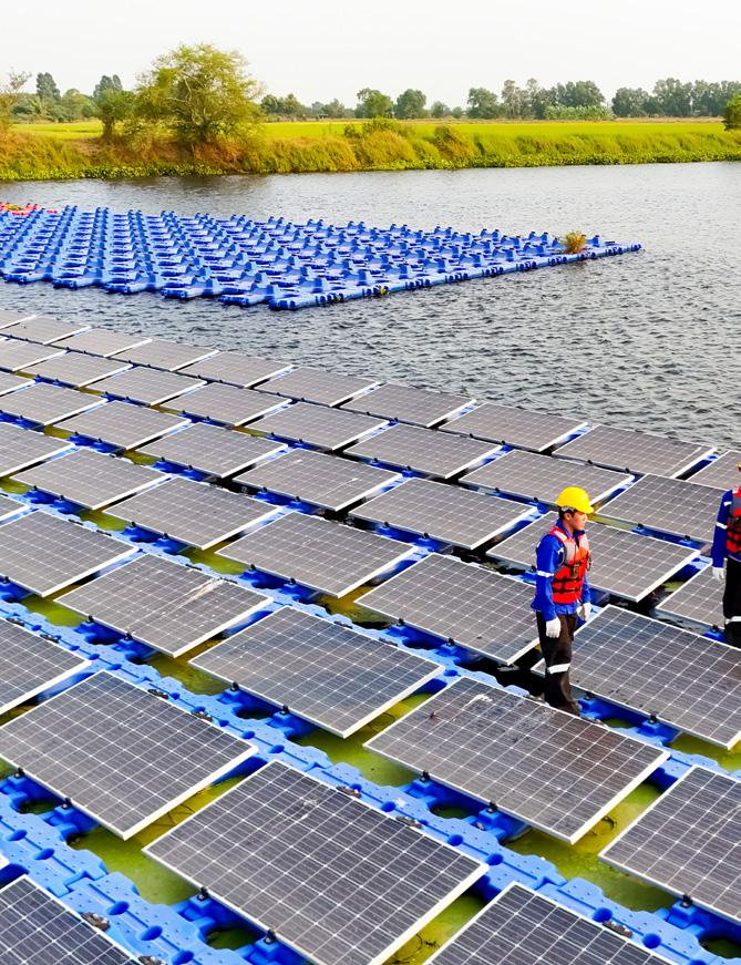 shared infrastructure (substations, transmission lines) and a mature local supply chain. Thai FPV tenders in 2023 closed at $0.039/kWh, undercutting gas-fired peakers. The premium for floats and mooring—typically 10–15% over ground-mounted systems— is offset by zero land acquisition costs, shorter permitting timelines, and higher energy yield. In landconstrained markets, FPV’s effective LCOE is often lower.