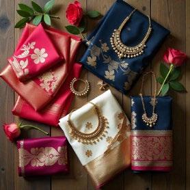 weaves grace daytime rituals and family pujas. In 2025, sarees remain central to festive wardrobes, appreciated for their versatility and elegance. Lightweight cottons and linens ensure comfort during fasting and rituals, while silk, brocade, and embellished fabrics elevate evening celebrations. Ethnic wear becomes not just attire, but a visual language of faith, femininity, and celebration.