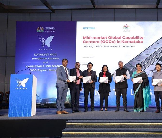 Sectoral Leadership and Global Clusters: Karnataka has successfully diversified its investment portfolio across several highgrowth sectors: The Silicon Valley of India: Bengaluru remains the world’s fourth-largest tech cluster. It is home to over 850 Global Capability Centres (GCCs), which generate $22.2 billion in revenue and drive innovation for 400+ Fortune 500 companies. Aerospace and Defence: The state contributes 65% of India's aerospace and defence output. In 2025, the state continues to attract massive investments in this sector, with a pipeline of over ₹10,000 crore. Semiconductors and Electronics: Karnataka hosts over 85 chip design firms, including global giants like Qualcomm, Nvidia, and Intel. It accounts for 70% of India’s chip designers. Biotechnology: With over 1,000 biotech enterprises, Karnataka produces 60% of India's biotech exports.