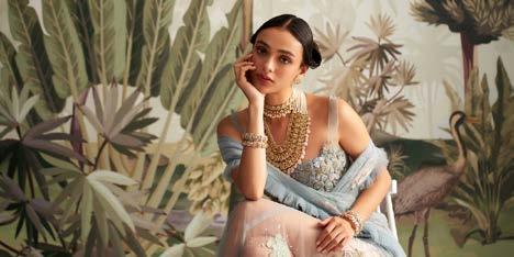 range showcases necklaces, earrings, bangles, and maang tikkas that marry traditional motifs with modern design sensibilities. Necklaces vary from delicately beaded chokers that hug the neckline to long, layered sets that make a dramatic statement. Earrings in this collection range from traditional chandbalis and jhumkas to sleek, elongated designs that complement contemporary outfits. Polki diamonds add an unparalleled sparkle, and the intricate gold detailing ensures that each piece stands out as an artwork in itself. What distinguishes this collection is its versatility. Pieces are designed to suit festive occasions, weddings, and highprofile social events while remaining wearable for discerning individuals who value timeless elegance. The attention to detail extends to every curve, motif, and setting, ensuring that the jewellery exudes sophistication from every angle.
