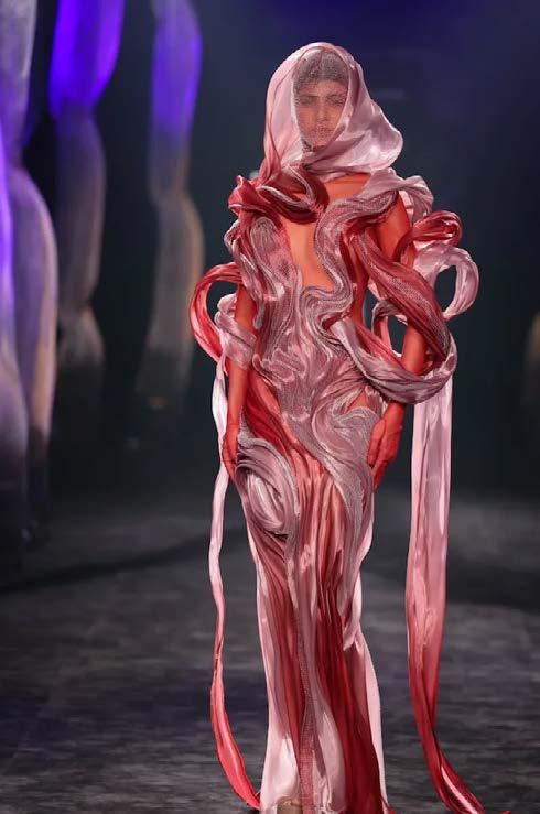 Amit Aggarwal’s Arcanum was arguably the most futuristic showcase of the season. Drawing inspiration from human biology and DNA, the collection unfolded in five conceptual chapters – Origin, Bloom, Pulse, Mutation, and Memory. Exploring sculptural forms, spirals, and layered iridescent textures, each piece pushed the boundaries of innovation and structure.