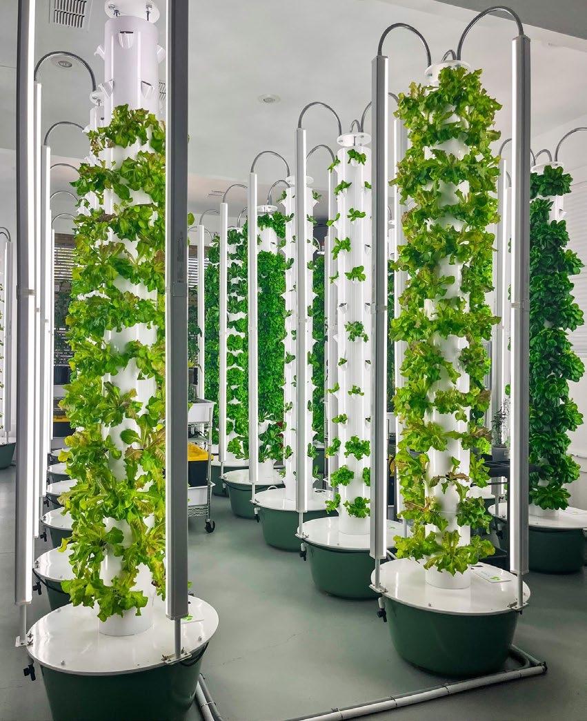 using up to 90% less water than traditional farming. Sensors and AI monitor plant health, adjusting light, temperature, and humidity in real time. This precision boosts yields—some vertical farms produce 10 times more per square meter than conventional farms. In Japan, companies like Spread Co. have scaled vertical farming to industrial levels. Their Techno Farm in Kyoto produces 30,000 heads of lettuce daily in a fully automated facility. Singapore’s Sky Greens, a pioneer in lowcarbon vertical farming, uses rotating towers to maximize sunlight exposure, producing greens with minimal energy. Meanwhile, China’s AEssenseGrows has developed AI-driven systems for largescale urban farms, catering to cities like Shanghai and Beijing.