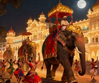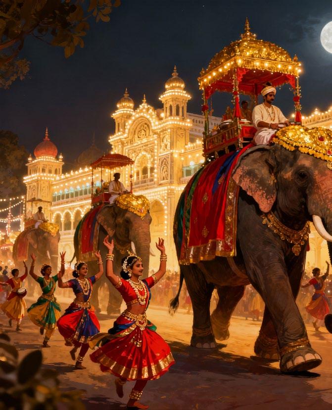 Economic and Global Impact: In 2025, Mysuru Dasara has become a significant driver of the state's economy. The Karnataka Tourism Department integrates the festival with specialized "Dasara Circuits," connecting Mysuru with nearby heritage sites like Belur, Halebidu, and Somanathapura. The influx of over 3 million tourists during this period provides a massive boost to the hospitality, transport, and handicraft sectors. The festival’s global footprint is further expanded through live streaming and VR experiences, allowing the international community to witness the grandeur of Karnataka’s heritage in real-time.