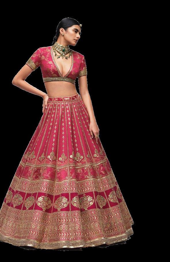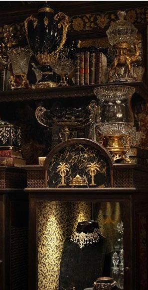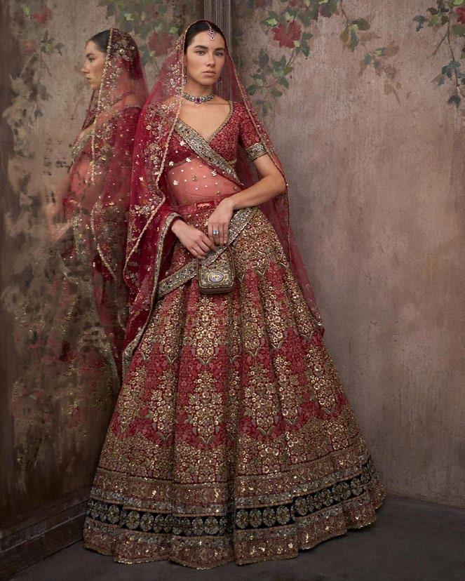 From the moment one steps into the Colonnade of The Leela Palace, the boutique establishes a different tempo. Hand-painted walls, antique teak joinery, low-lit chandeliers, and vitrines reminiscent of museum cabinets set an immersive stage. The experience is intentionally theatrical, with saris, lehengas, menswear, and high jewellery displayed as artefacts rather than seasonal merchandise. Visitors and critics alike have compared the space to a private gallery, where each piece carries a provenance-rich narrative and is meant to be contemplated rather than consumed quickly. Spread across approximately 3,800 square feet, the Bengaluru boutique houses the full breadth of the house—bridal couture, womenswear, menswear, international ready-to-wear, accessories, and high and fine jewellery—all unified by the brand’s signature maximalist yet heritagedriven aesthetic. The choice of Bengaluru, alongside established strongholds such as Kolkata, Delhi, Mumbai, Hyderabad, and New York, underscores Sabyasachi’s intention to deepen engagement with southern markets while offering residents a dedicated destination for