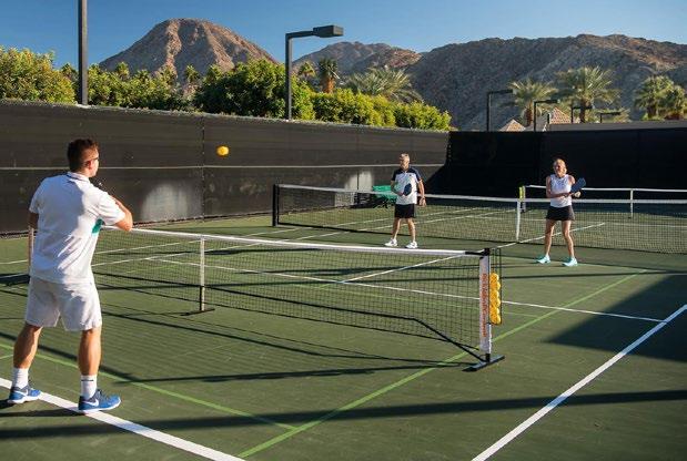 producers volleying in Ralph Lauren polo shirts on the eight tournamentquality pickleball courts. This isn’t a rec centre. It’s a multi-acre, fullservice resort community wrapped around two Tom Fazio-designed golf courses, a five-star spa, fine dining, and concierge living. The club runs private coaching,
