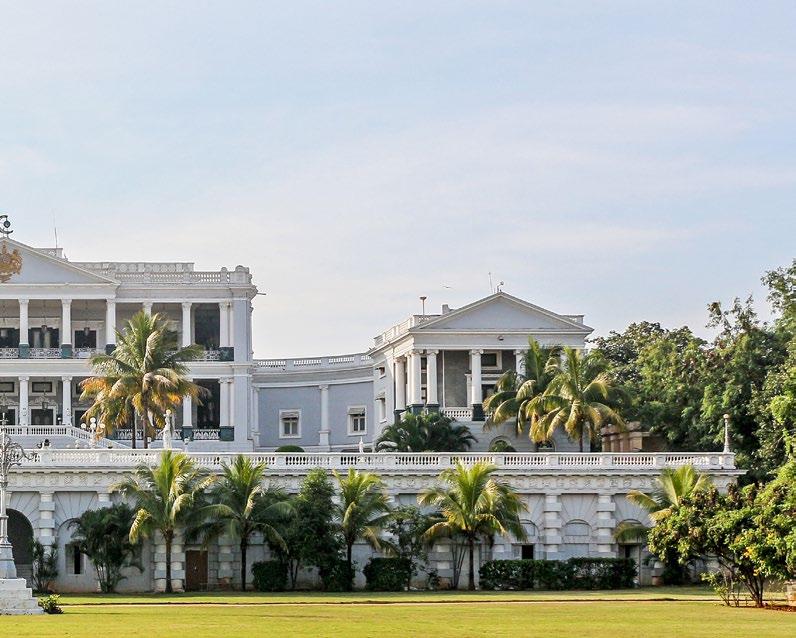 High atop Hyderabad’s Seven Hills, Falaknuma Palace—a Taj Hotels gem—rises like a mirage from the Deccan Plateau, its Italian marble facade whispering of Mughal splendour and British dalliance. Built in 1893 as a princely folly for Vikar-ul-Umra, it became the pied-à-terre of the sixth Nizam, Osman Ali Khan, the world’s richest man at the time, whose treasury rivaled empires. Restored in 2010 after decades of slumber, the 60-room palace now regales with chandeliers from Europe’s finest ateliers, libraries lined with 6,000 leather-bound tomes, and a ballroom where viceroys once waltzed. The story unfolds in lavish layers: the Adaa fine-dining hall serves Hyderabadi biryani on silver thalis, recipes guarded like state secrets, while the Jiva Spa channels Unani healing traditions in hamams of onyx and