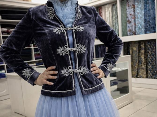 After ninth grade, the future craftswoman decided to enroll in a tailoring program. In 2000, she had the opportunity to intern at a renowned fashion house. Her first major project was a set of traditional clothing for her grandfather. She sewed for him a taqiya, börük, tymaq, and shapan, which he wore with pride.