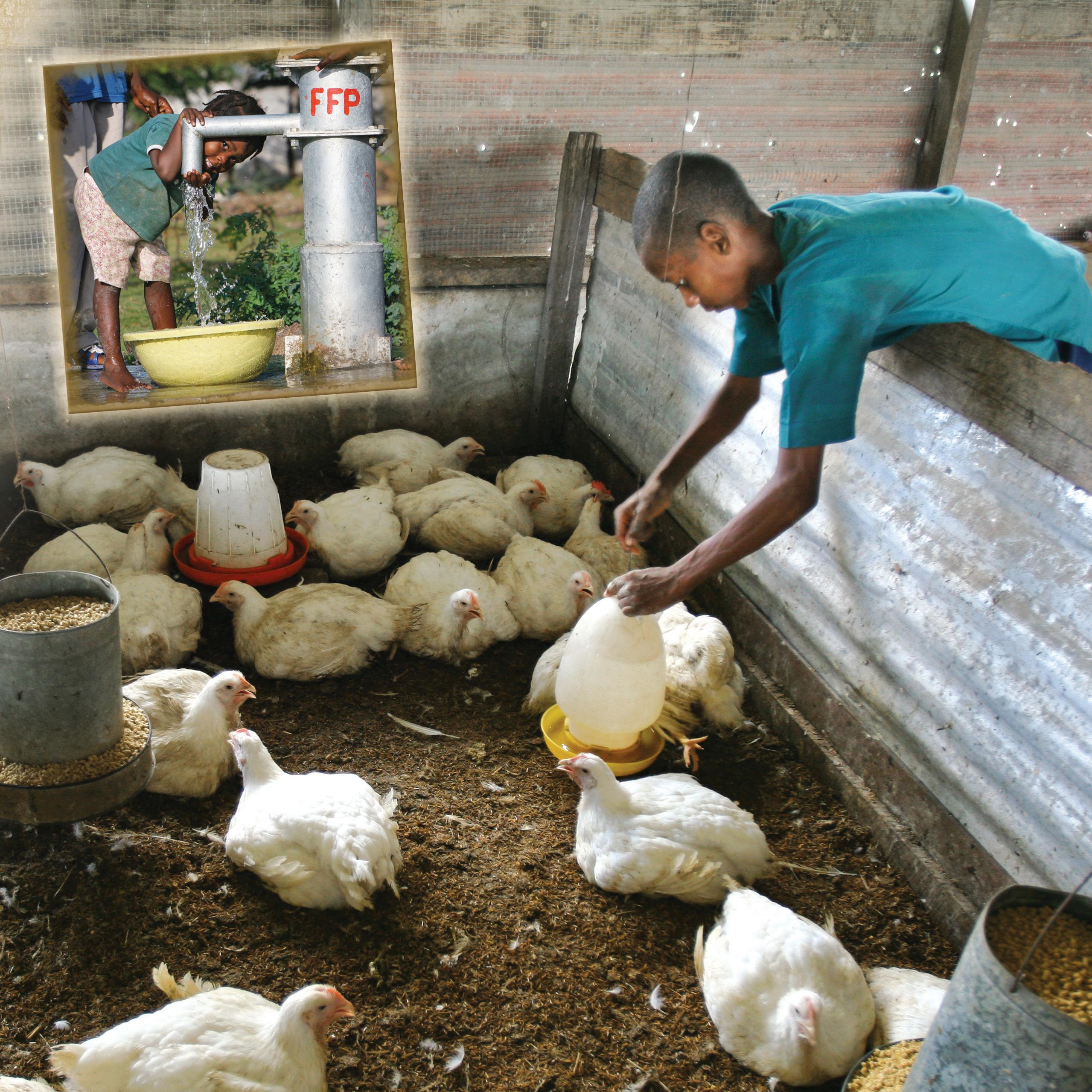 Chicken farming is an inexpensive and economical way to increase a family’s protein intake. Food For The Poor helps families with the construction of a chicken coop, provides baby chicks that are vaccinated to ensure healthy growth, and supplies chicken feed. After 18 weeks, the chickens are able to lay eggs. These eggs provide a valuable source of protein, and extra eggs can be sold to provide the family with income. As the flock multiplies, older chickens become a source of food and income for the family.