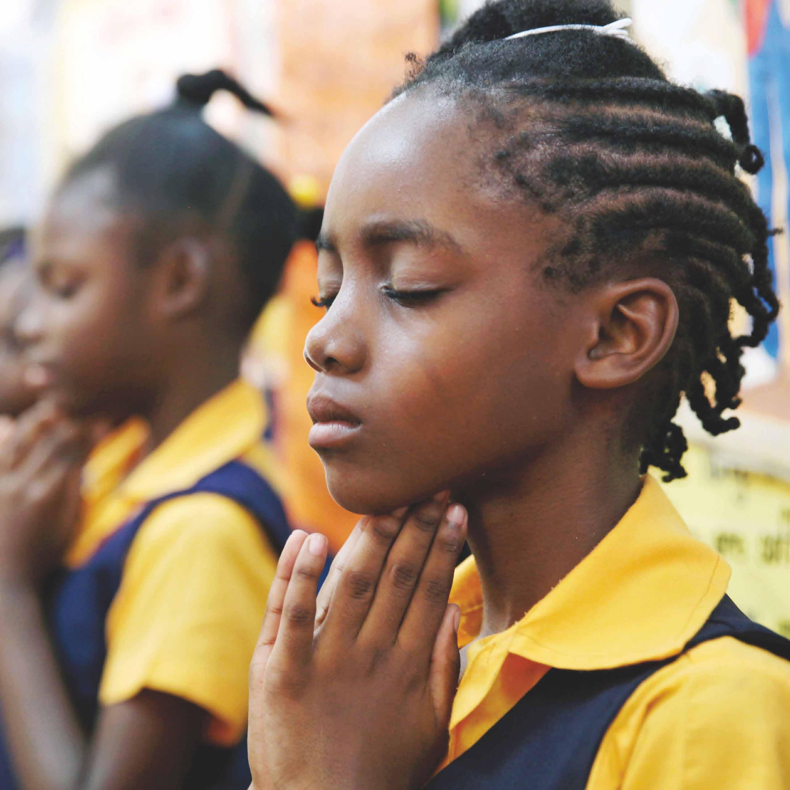 “Giving thanks always and for everything in the name of our Lord Jesus Christ to God the Father.” (Ephesians 5:20)RIGHT: Girls pray before their meal at Green Island Primary School in Jamaica.