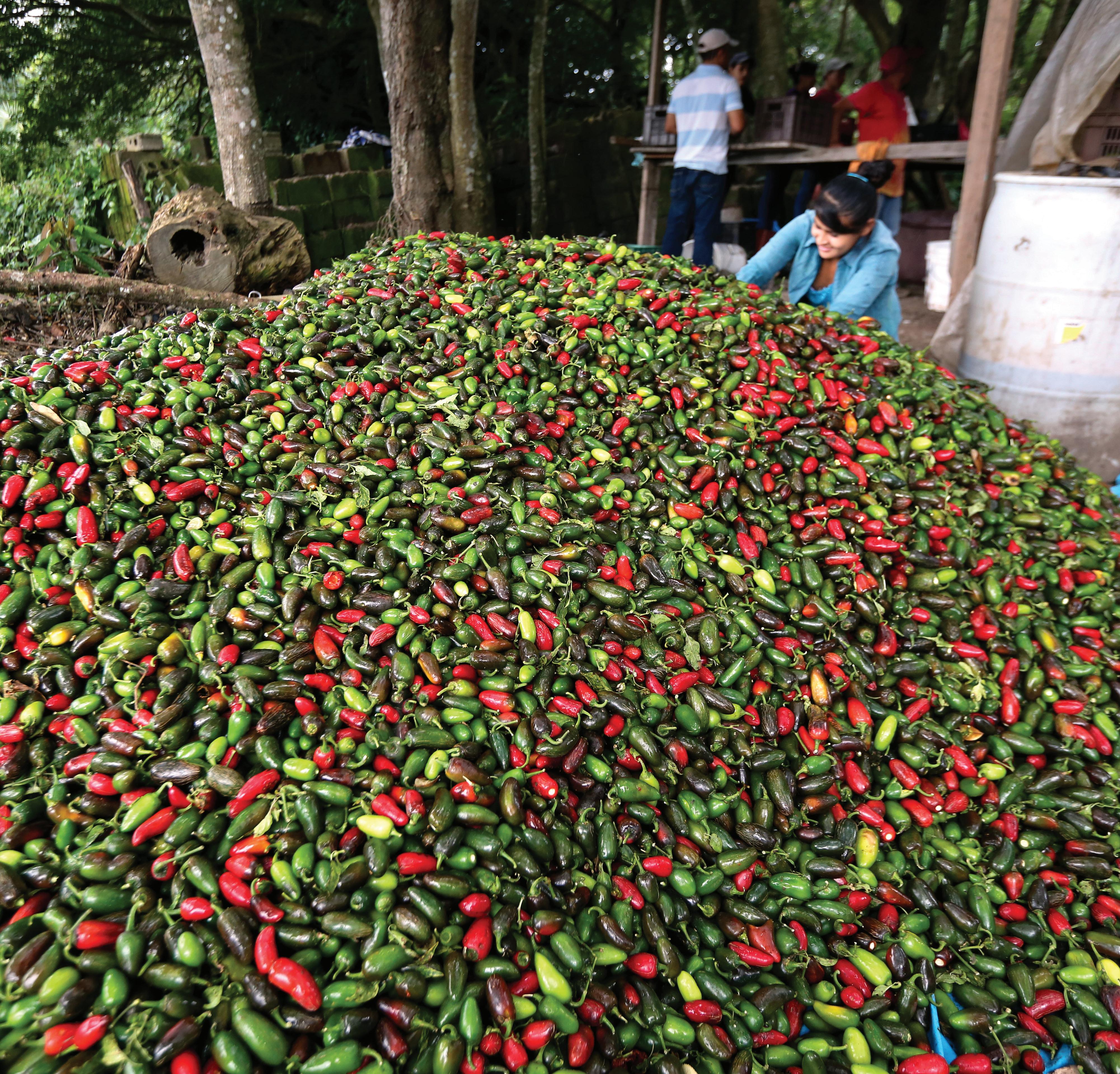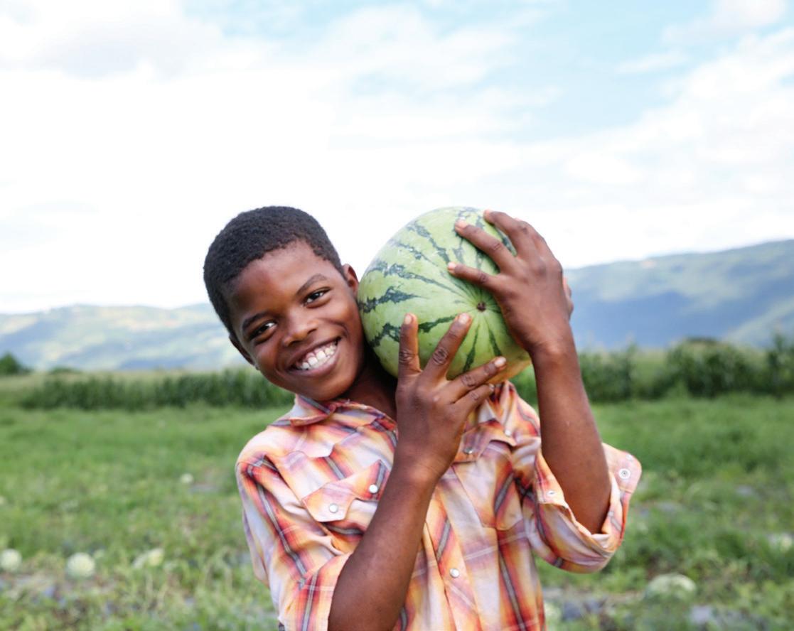 A worker sorts through a mountain of jalapeño peppers at a Food For The Poor donor-supported agricultural cooperative in Honduras. Kie, 10, smiles as he carries a “pineapple melon” as part of an agricultural project in Newcombe Valley, Jamaica, supported by Food For The Poor donors.