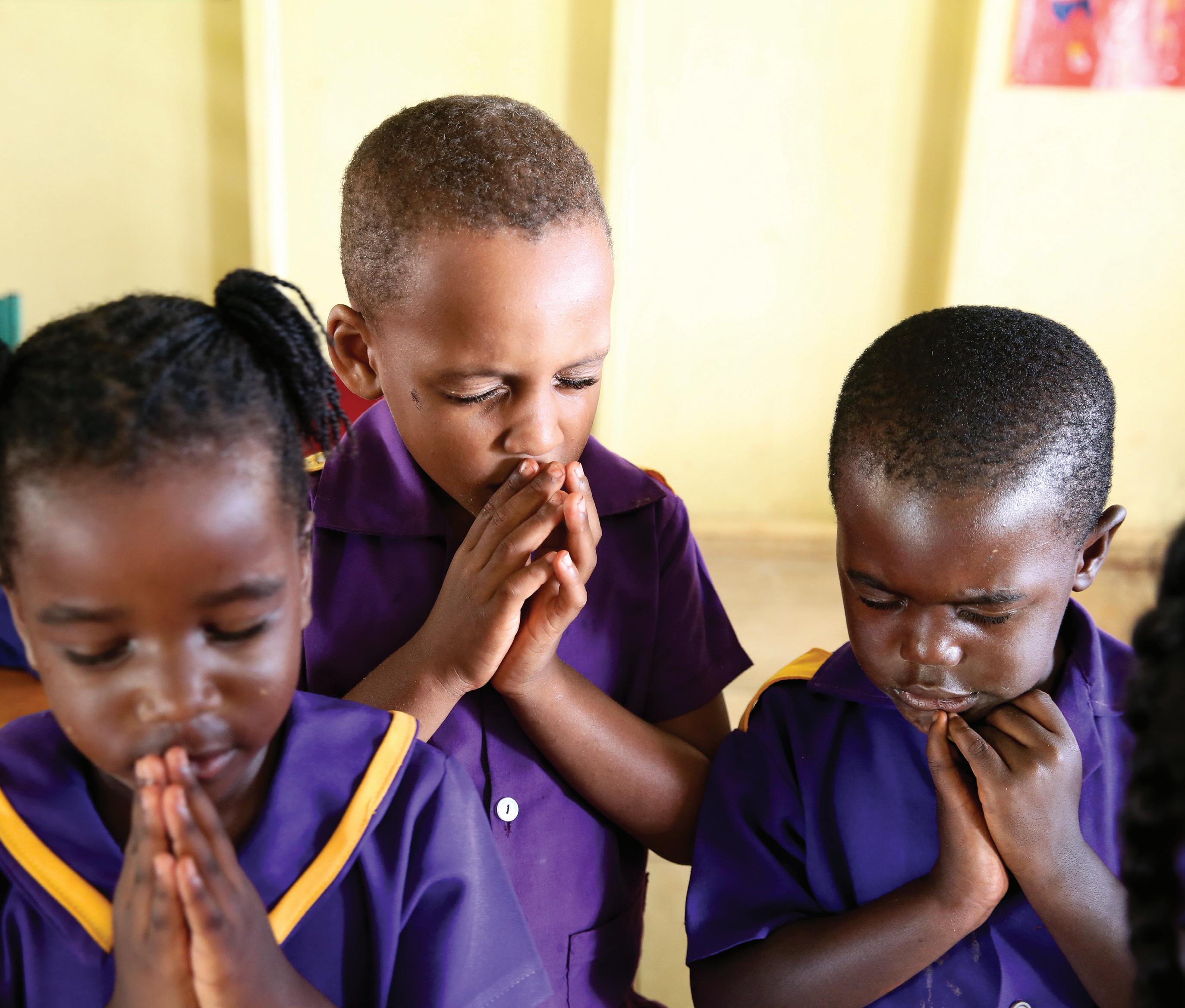 Students pray before the start of their school day at the Pedro Plains Basic School in Jamaica, built by generous Food For The Poor donors.