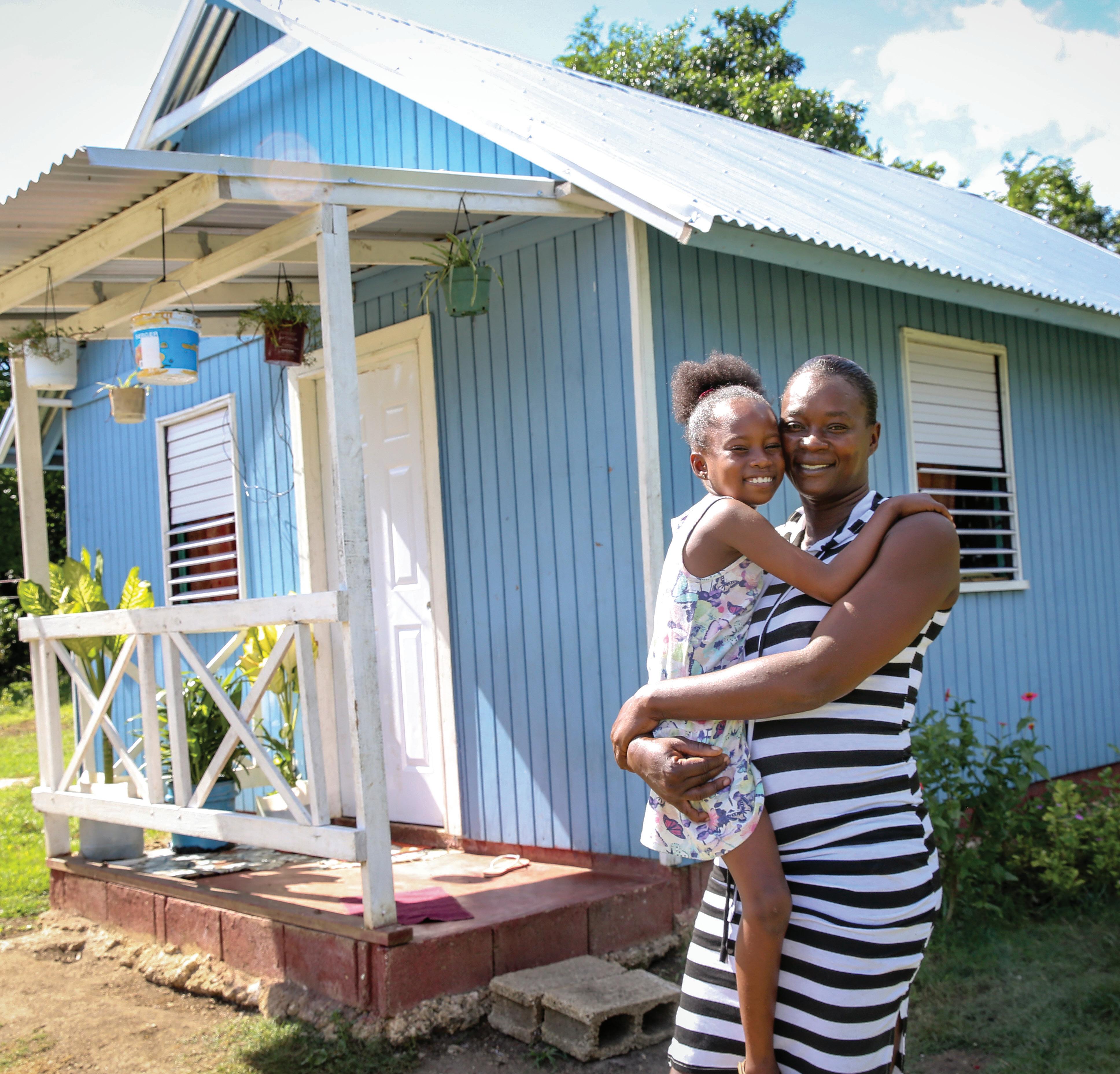 Cheryl and Amelia pose in front of their new home in Jamaica built through the generosity of Food For The Poor donors.