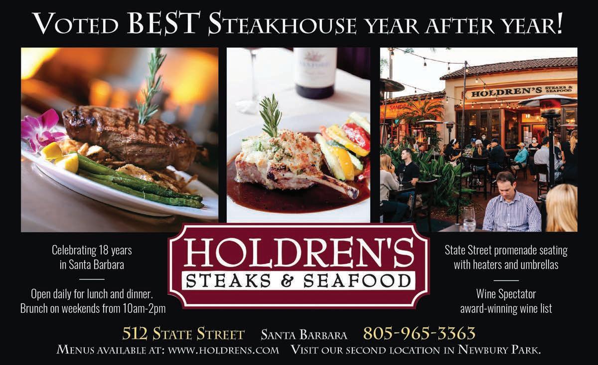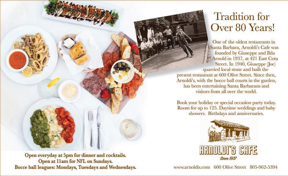 This informal, friendly, and hearty Italian bistro is located in the heart of wine country. 3687 Sagunto St., Santa Ynez, 805-6886899; trattoriagrappolo. com, open Tues.-Sun. for lunch and daily for dinner.