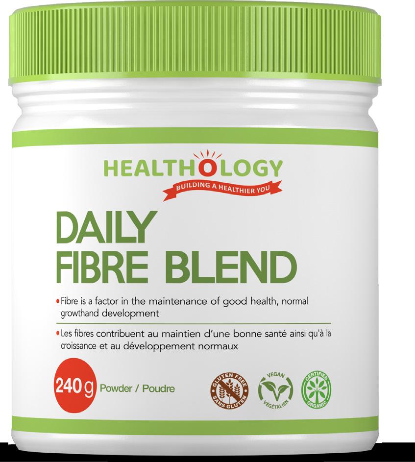 DAILY FIBRE BLEND provides a healthy boost of fibre that can be easily added to meals and snacks. It contains 3g of fibre per serving, and is non-GMO, Certified Organic, and free from additives.