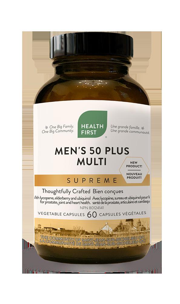 Health First’s Men’s 50 Plus Multi Supreme offers highly bioavailable nutrients that give you the most out of your multi! It features Aquamin™ calcium and magnesium derived from sustainably sourced red algae for ultra-absorbability as well as methylated B vitamins and buffered vitamin C. Our formula includes patented ElderCraft® European black elderberry not only to support immune health but also to relieve joint pain, as extensively studied. Lycopene and Kaneka Ubiquinol® have also been added to this well-rounded formula to support prostate and heart health.