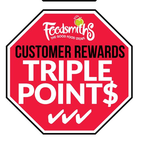 NEW IN THE STORE BE A FOODSMITHS REWARDS CUSTOMER! Foodsmiths’ Customer Rewards Program makes it easy to earn and redeem points fast! You get 1 point for every $1 you spend!! Receive a $10 reward for every 500 points you earn! More information in-store. customer rewards WATCH YOUR POINTS ADD UP FAST! SIGNUP AT OUR CASH! OR ON OUR WEBSITE: FOODSMITHS. COM PRICES IN EFFECT THURSDAY, AUGUST 10 TO THURSDAY AUGUST 17 ONLY UNLESS OTHERWISE STATED. WHILE SUPPLIES LAST. NO RAIN CHECKS OR SUBSTITUTIONS. IMAGES ARE REPRESENTATIONAL ONLY. PRODUCTS MAY NOT BE EXACTLY AS SHOWN. E & OE. FRESH DEALS THROUGHOUT THE STORE ALLEN'S DOUBLE STRENGTH CLEANING VINEGAR 2.5 L CAULIPOWER GLUTEN FREE TORTILLAS IN OUR FREEZER 150 G - 200 G NATURE CLEAN HAND SOAP NEW SCENTS! SWEET PEA 500 ML FOAMING VANILLA PEAR OR GERANIUM SKY 415 ML PÜR SUGAR FREE ASPARTAME FREE GUM NO ARTIFICIAL FLAVOURS PROMOTES ORAL HEALTH 77 G ASSORTED 8 79 / EACH EVERYDAY PRICE 5 79 / EACH SAVE 50¢ 2 99 / EACH SAVE $7 4 79 / EACH SAVE 50¢