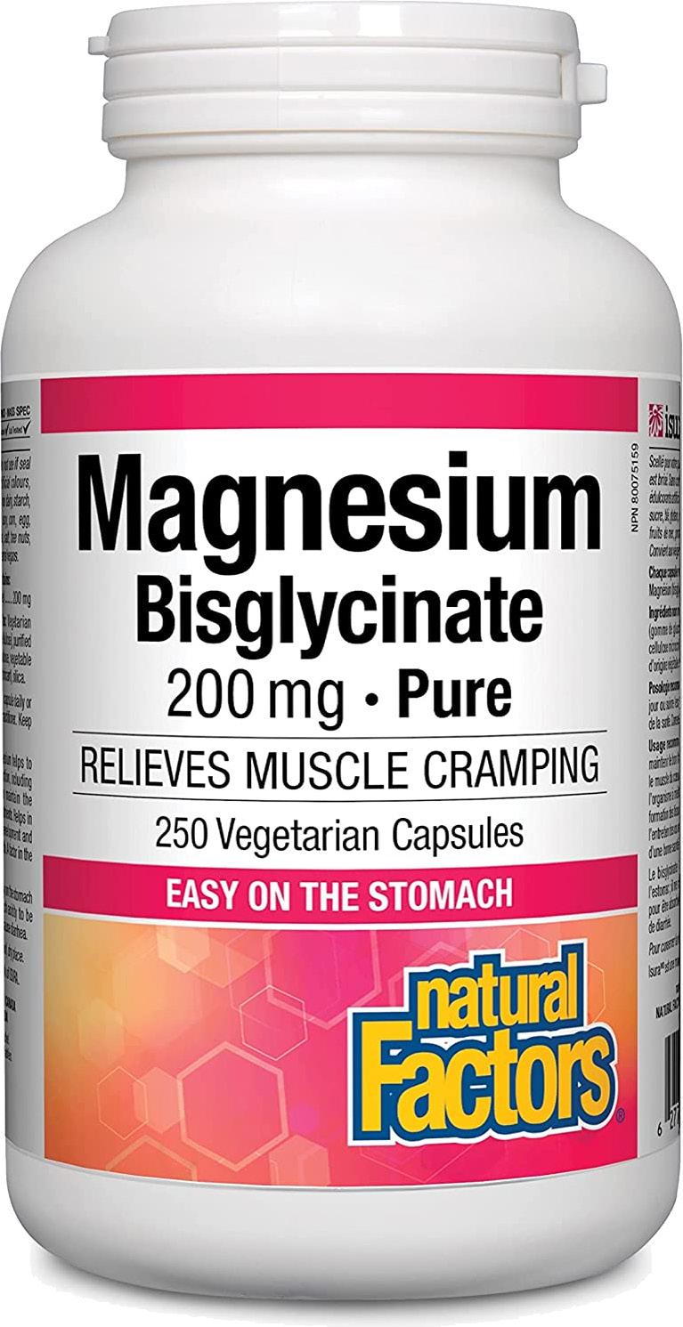 Natural Factors Magnesium Bisglycinate Pure provides 200 mg of this essential mineral to help support muscle function, including the heart muscle. This one-perday, non-GMO magnesium is suitable for vegetarians and vegans, and is provided in a form that is easy on the stomach.