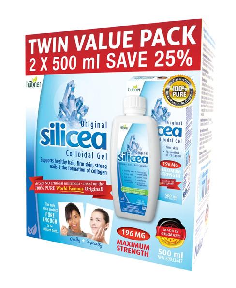 2499 SAVE $5 EACH SILICEA 200ML 100% Pure. Beautiful healthy hair, stronger nails and bones, Smoother looking skin and much more! Preservative free, additive free, excipient free. 6999 SAVE $5 EACH SILICEA 2X 500ML VALUE PACK Twin Value Pack. 100% Pure. Beautiful healthy hair, stronger nails and bones, Smoother looking skin and much more! Preservative free, additive free, excipient free. 3399 SAVE $3 EACH NATTOKINASE BONUS SIZE 75 DR VEGGIE CAPS Naka Platinum Nattokinase will benefit in Breaking Down Blood Clots, Arterial Cleansing, Vericose Veins, Improved Blood Circulation, Relieve Nasal Inflammation and Blood Pressure. 5399 SAVE $3 EACH EXTRA STRENGTH QUERCETIN BONUS SIZE 120 VEGGIE CAPS Quercetin is a bioflavonoid that is found in many vegetables, fruits, and herbs and is needed for assisting in the absorption of Vitamin C. Quercetin is commonly used for reducing excessive inflammation and allergies. 5399 SAVE $3 EACH PLATINUM BIOMAX B COMPLEX BONUS SIZE 150 VEGGIE CAPS Most Bioavailable forms of B Vitamins. Added Ashwagandha for stress and mood management, Rhodiola to support the nervous system and physical endurance. Added Panax Ginseng to support cognitive function and energy production. 3299 SAVE $3 EACH B50 COMPLEX BONUS SIZE 600ML Helps normal growth plus the formation of tissue & red blood cells. Helps the body to metabolize carbohydrates, fats and proteins. A factor in maintenance of good health.