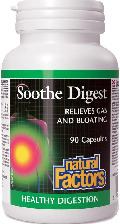 Natural Factors Soothe Digest contains fennel seed, anise seed, and caraway seed, three aromatic carminative herbs that are known to help relieve digestive disturbances such as spasms and flatulence.
