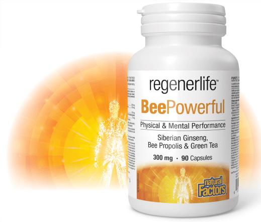 This supplement offers a rejuvenating combination of bee pollen, bee propolis, Siberian ginseng, and green tea.