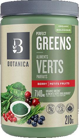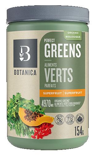 Botanica Perfect Greens is an organic greens powder blend of chlorella, spirulina, and leafy greens to help ensure that you’re getting your daily greens.