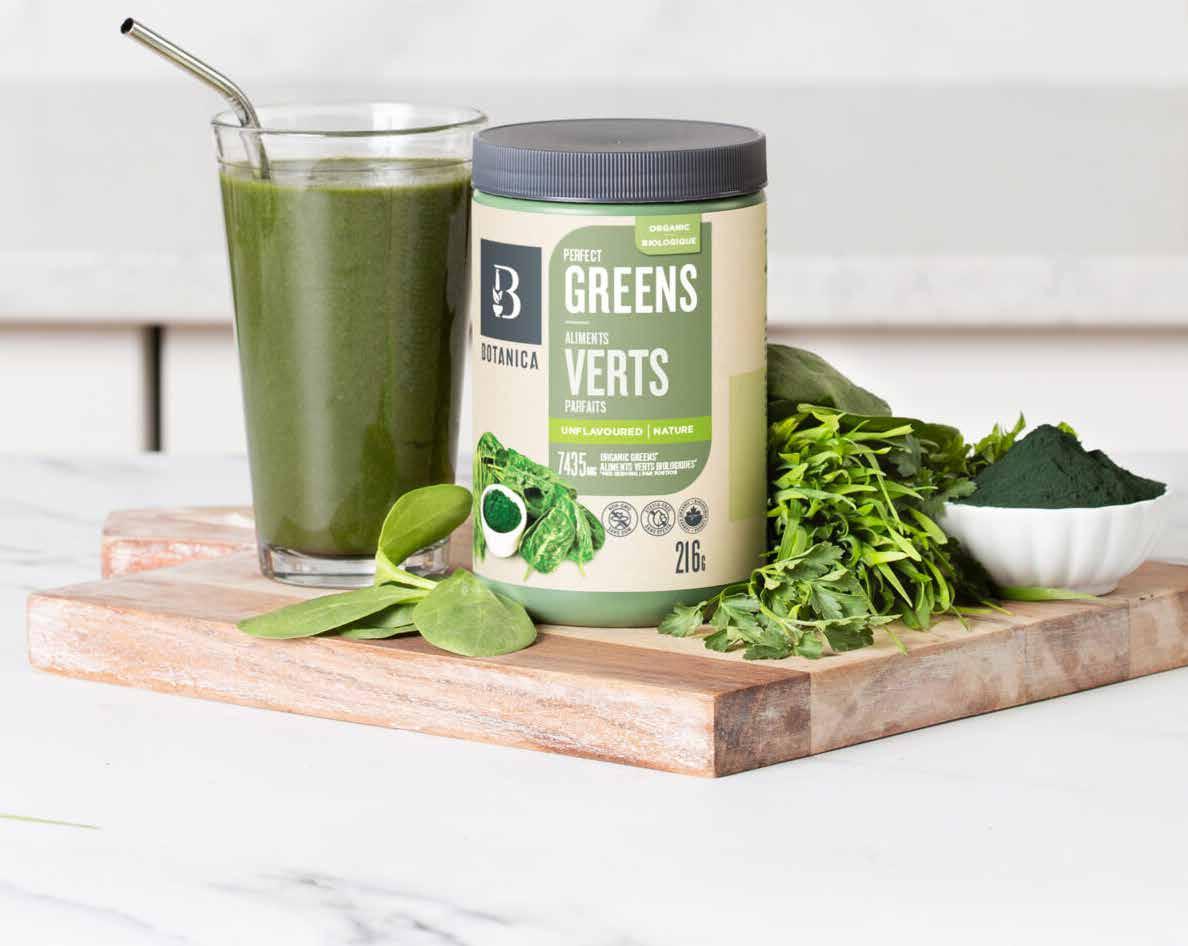 Botanica Perfect Greens is an organic greens powder blend of chlorella, spirulina, and leafy greens to help ensure that you’re getting your daily greens.