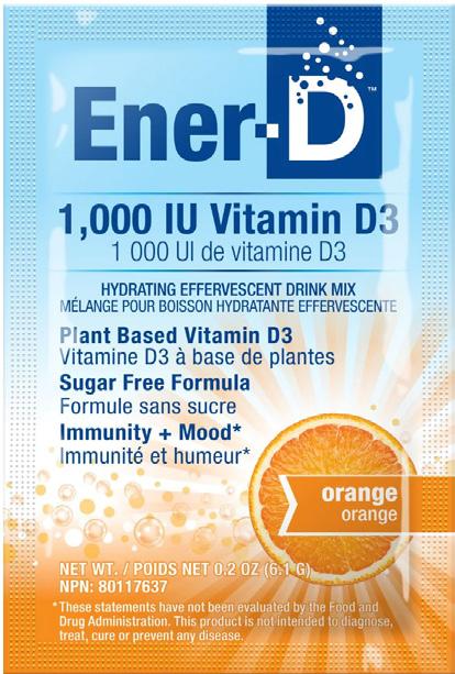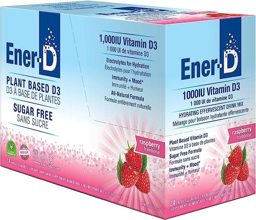 Ener-D is a sugar-free powdered Vitamin D drink mix with 1000iu of plant-based Vitamin D3 sourced from organic lichen and sprayed with MCT oil for optimum absorption.