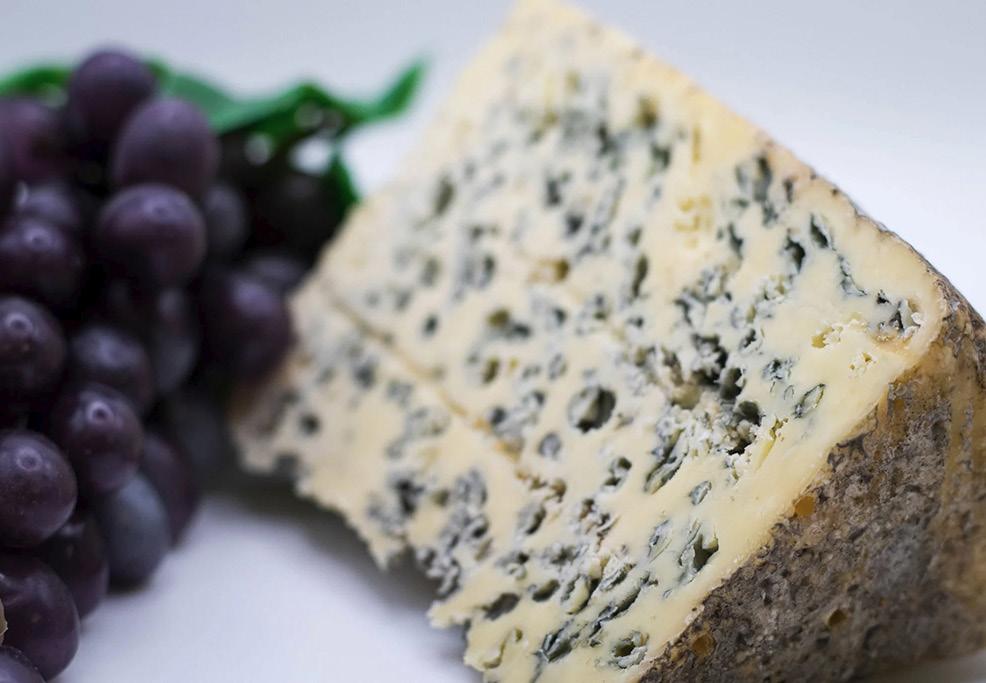 Krueger Blue is a Guernsey milk "Blue", with spots or veins of mold throughout the cheese. Can be eaten by itself or spread, crumbled and melted. The flavour is pungent with a creamy texture.