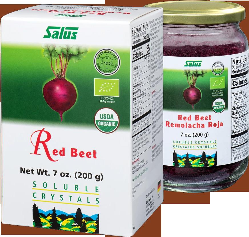 Red Beet Crystals are produced without carrier substances in a special drying procedure from organic red beet juice. The finished product contains all of the valuable constituents of the fresh beets and is naturally sweet tasting and instantly soluble. Salus Red Beet Crystals blend well into fruit juices, milk and milk products, soups, muesli, cereals, and other dishes and are also delicious when eaten dry.