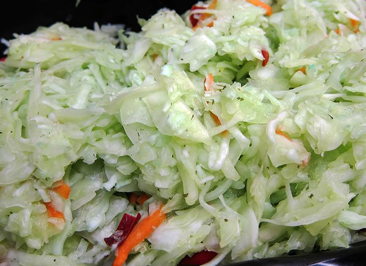 Whisk together olive oil, red wine vinegar, and salt and pepper. Combine all ingredients in a large bowl. Toss until combined. Taste and add more salt & pepper if needed. -- Cathy Kirkham