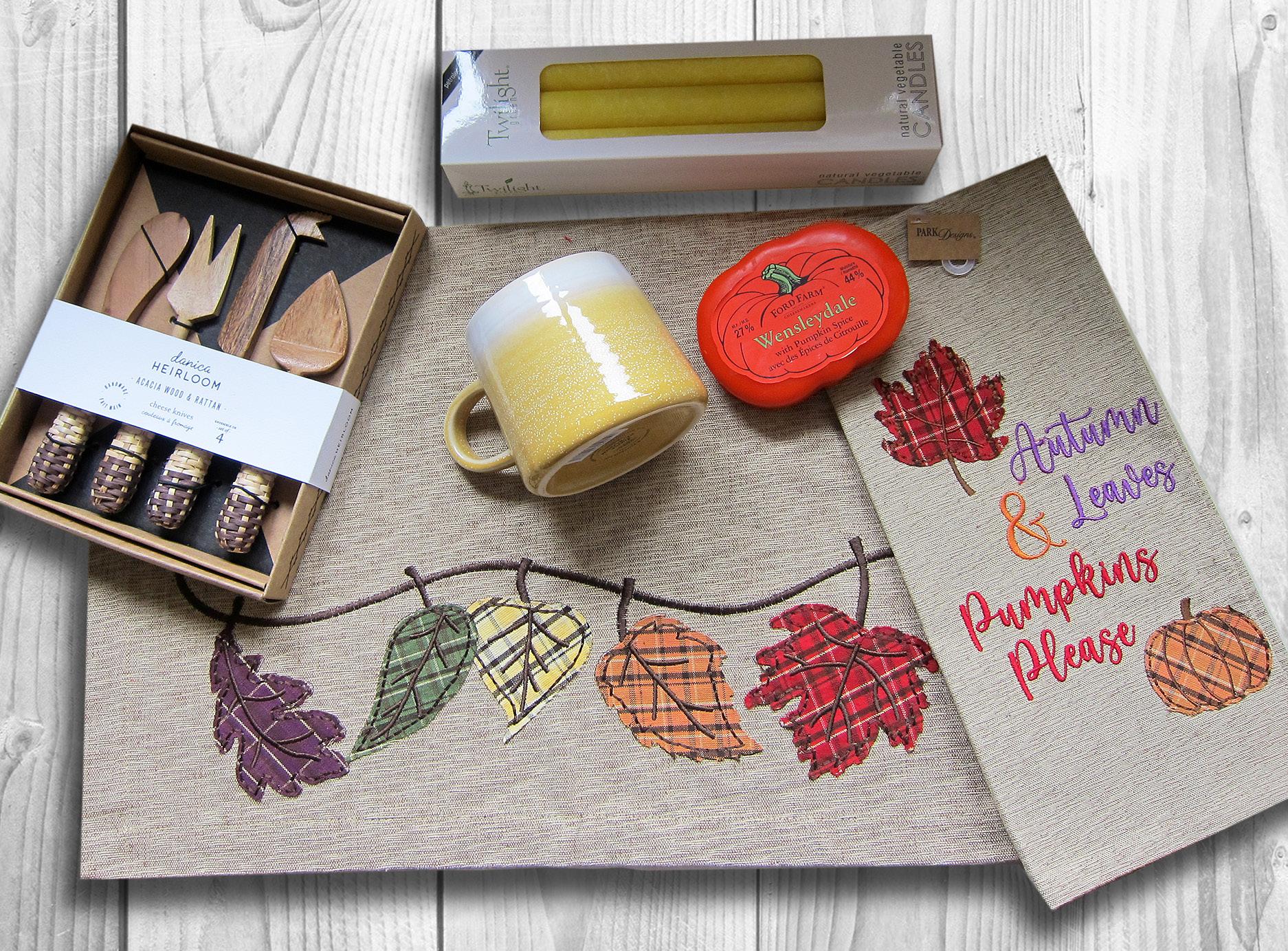 YOUR THANKSGIVING TABLE Beautifully WITH OUR SPECIAL FALL THEMED HOUSEWARES! PLACEMATS, NAPKINS, NAPKIN RINGS, MUGS, CUPS, TEACLOTHS, BEAUTIFUL WOOD UTENSILS PLUS LOTS MORE! ALSO MAKE THOUGHTFUL GIFTS. Dress Up w