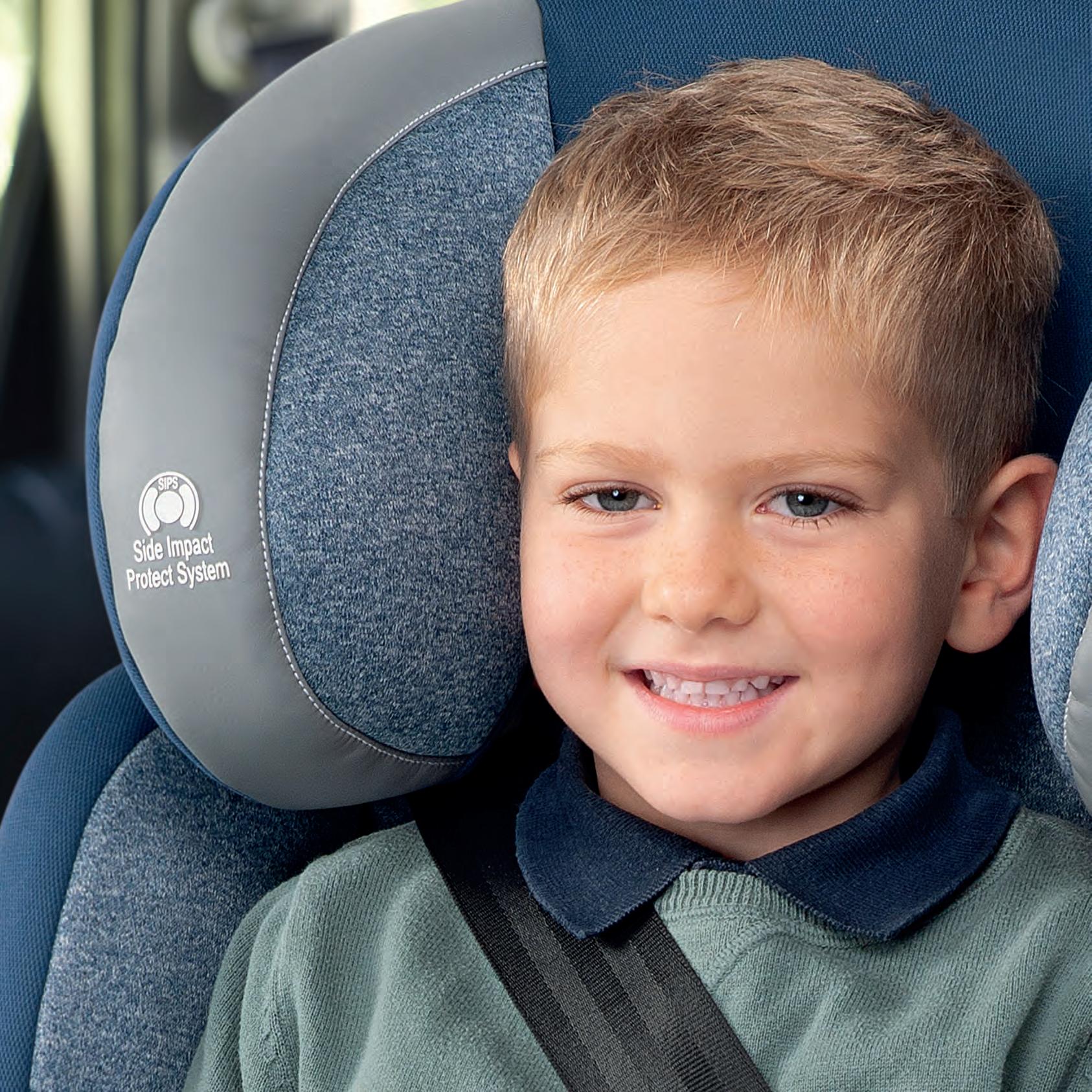 • Poggiatesta e cinture di sicurezza a 3 punti regolabili.