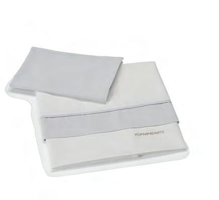 La confezione tessile di iNanna, per coordinarsi agli arredamenti della camera dei genitori, è caratterizzata da un tessuto esterno “manopesca” morbido e vellutato al tatto e da una abbondante imbottitura interna in ovatta e un rivestimento interno fresco e traspirante anche nei mesi estivi.