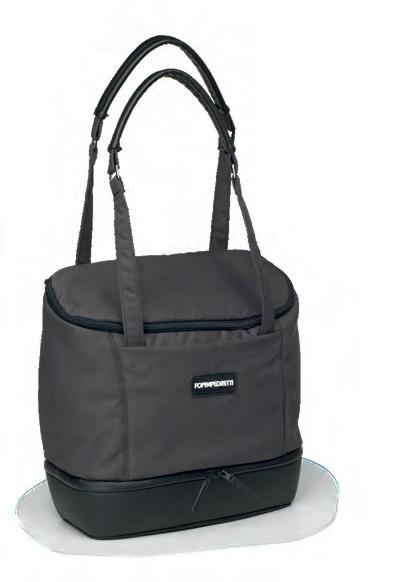• doppio fondo rigido in tessuto effetto pelle e interno idrorepellente;