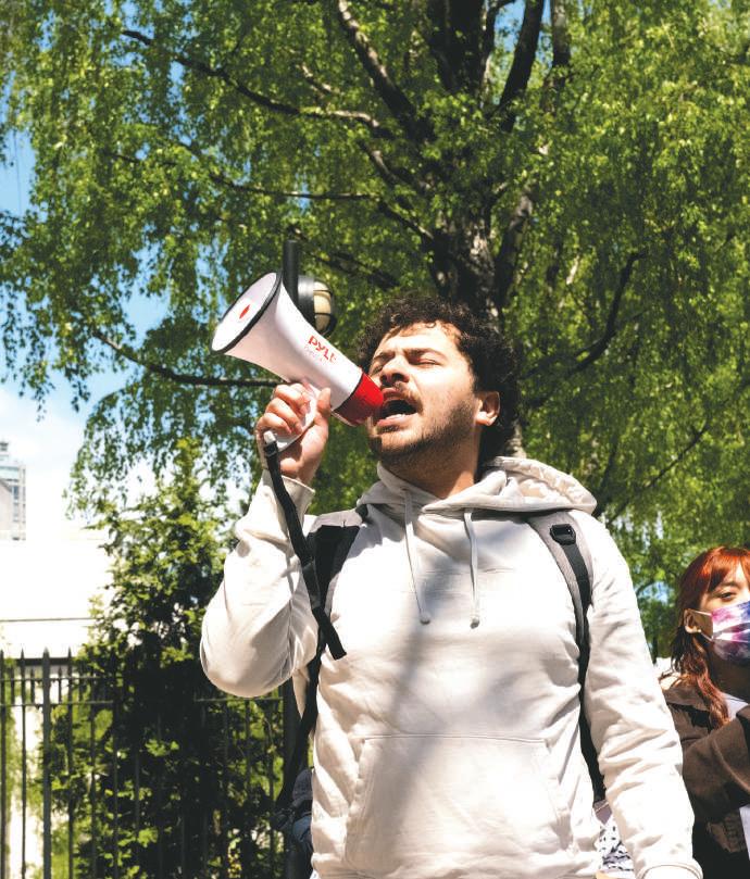 At a rally organized by leaders from Fordham’s undergraduate Students for Justice in Palestine (SJP), students and faculty crowded the corner of 60th Street and Columbus Avenue on Thursday, April 25 at roughly 11:30 a.m.