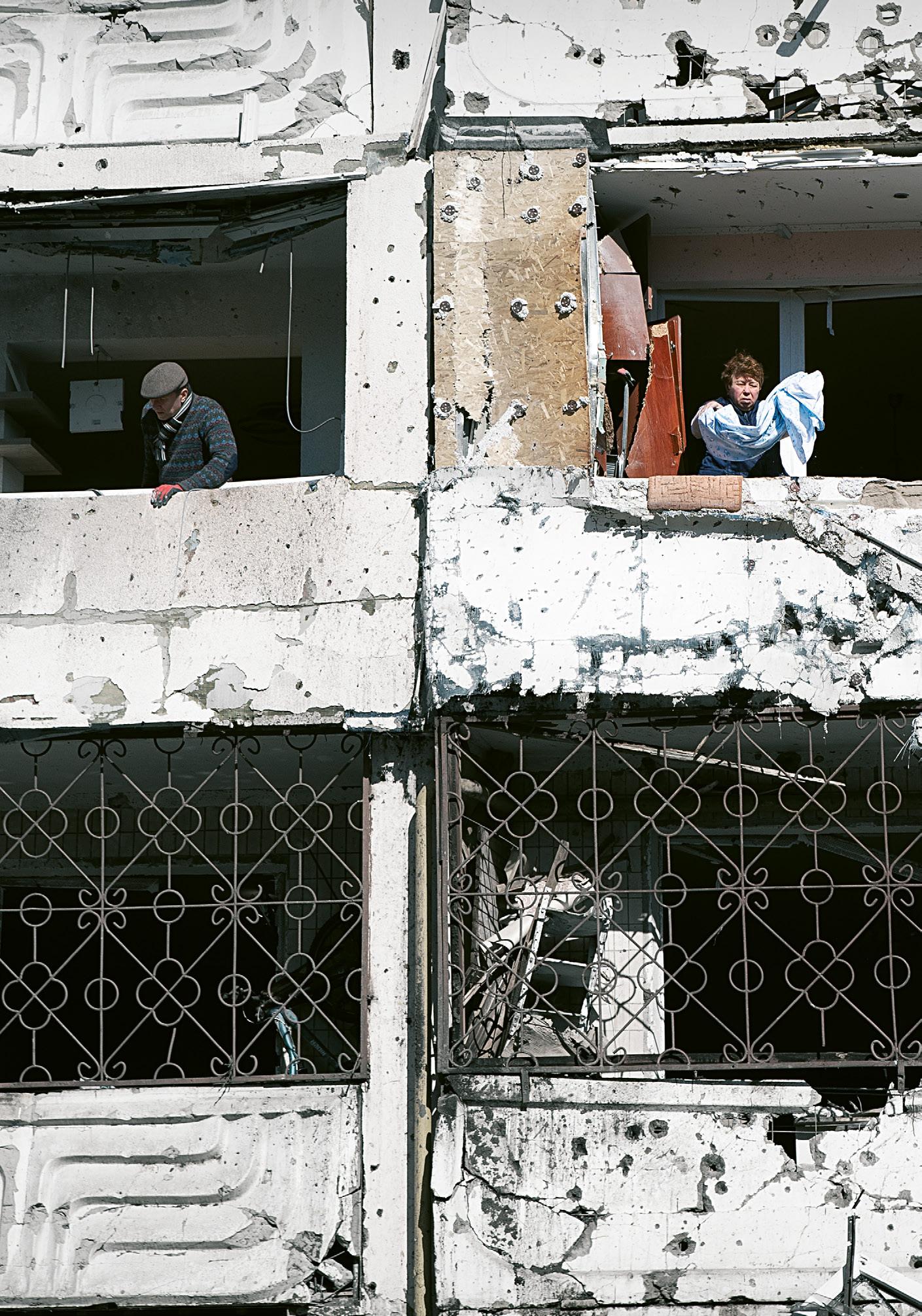 Vi fortsetter til Tsjasiv Jar, der noen av medsoldatene hans har base i kjelleren i en boligblokk. Før fullskalakrigen var det rundt 13 000 innbyggere i byen, nå er det svært få igjen.