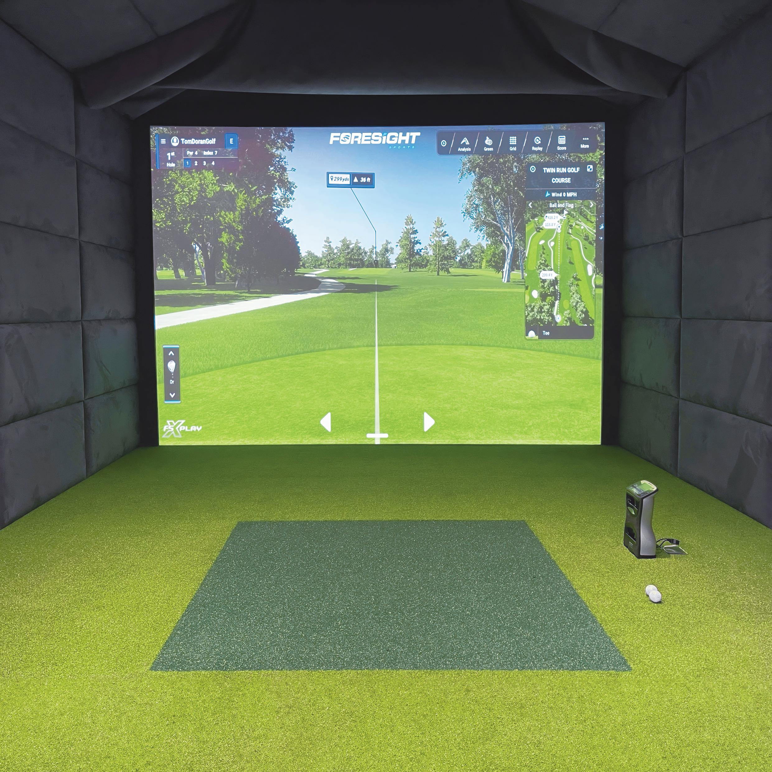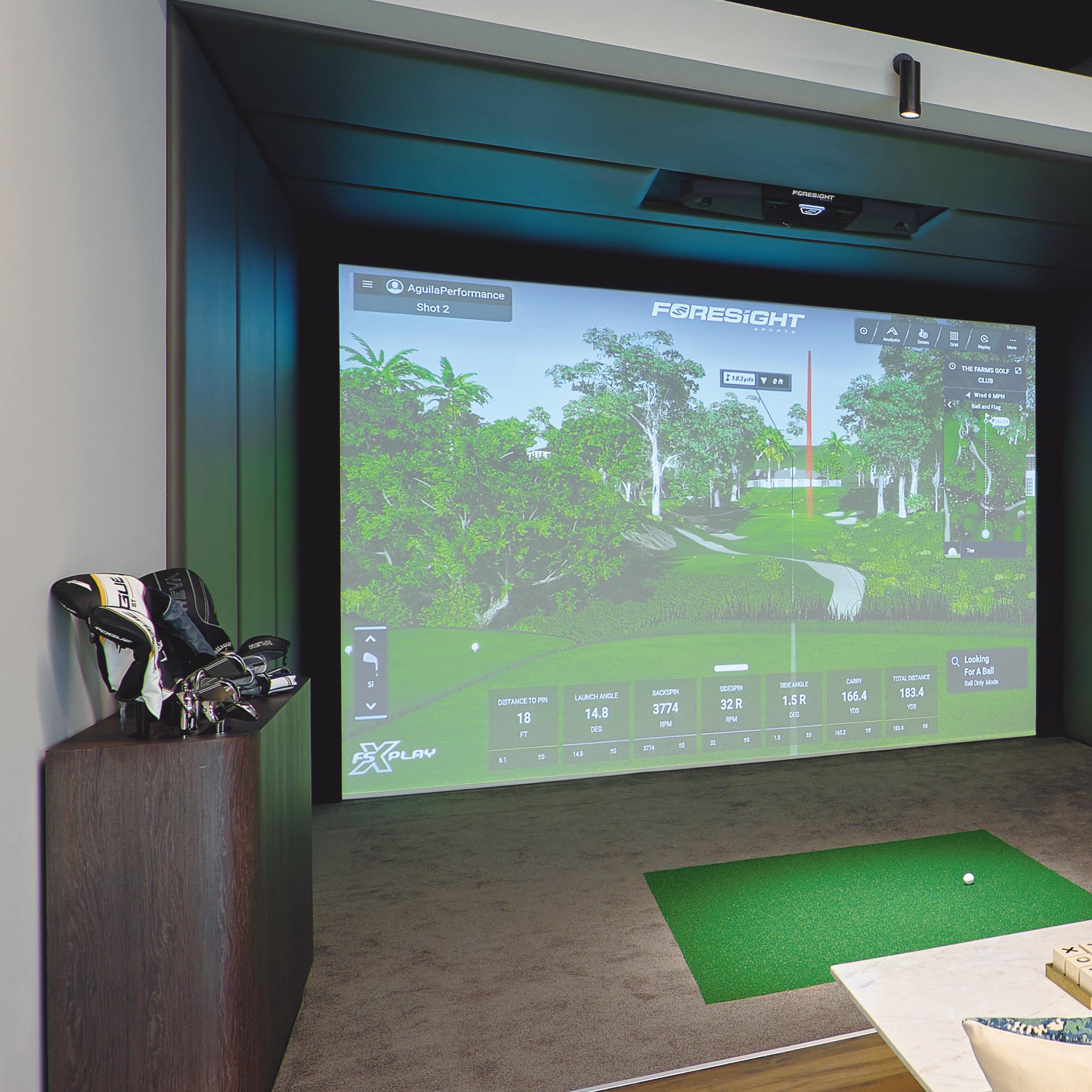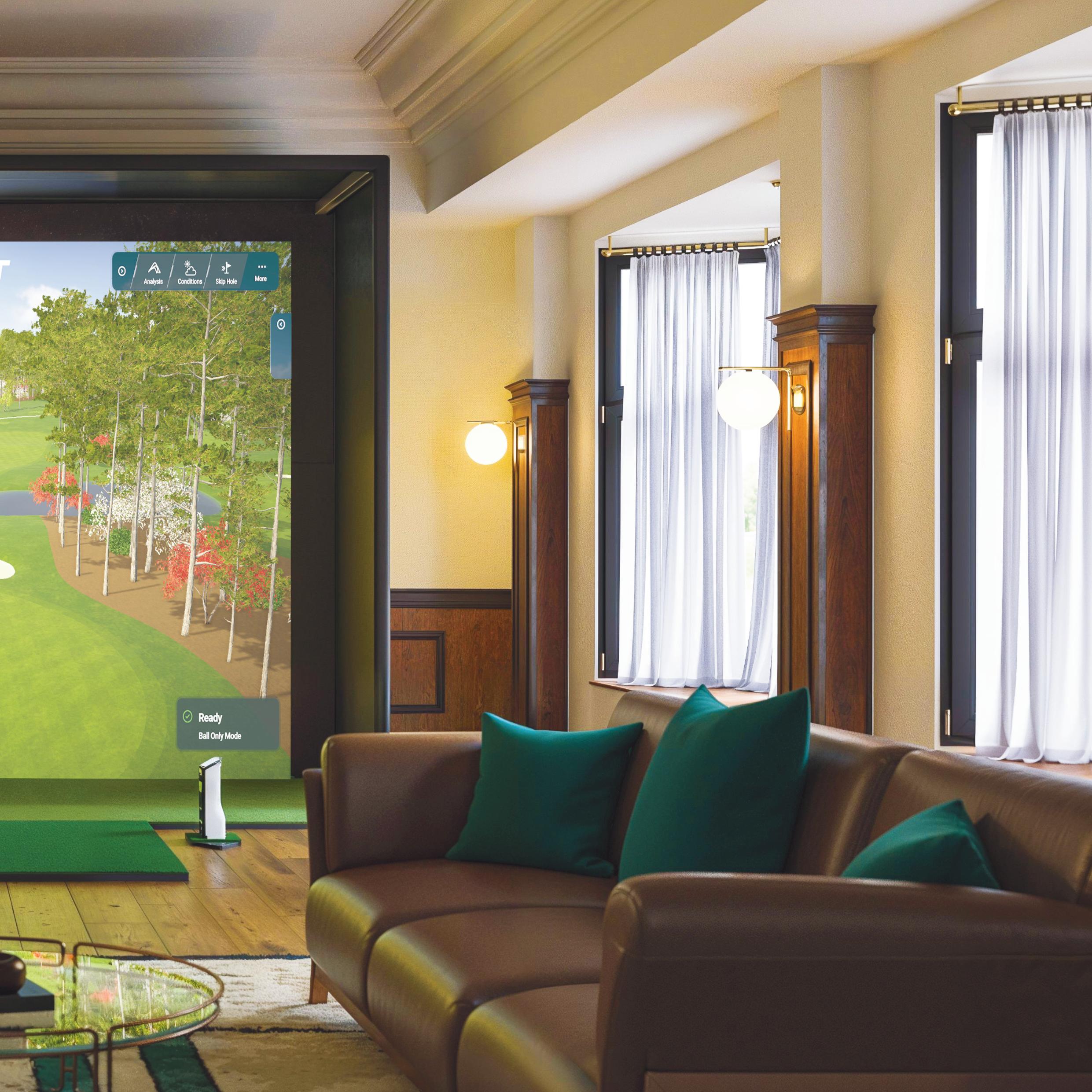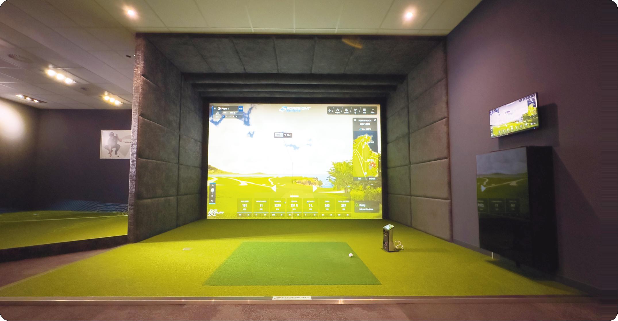 Nous avons conçu et installé un simulateur personnalisé au format 16:10, avec des panneaux entièrement capitonnés sur les murs et le plafond pour un rendu luxueux. Le GCQuad, le moniteur de lancement le plus utilisé dans l'industrie, offrira une précision inégalée et des données directement mesurées pour la balle et le club, garantissant ainsi une précision parfaite à chaque session.